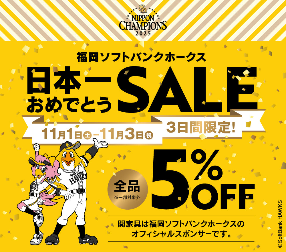 3日間限定ALL5%オフ!福岡ソフトバンクホークス優勝おめでとうセール!