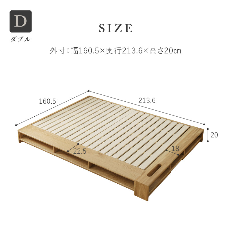 トリシア ベッドフレーム オーク節有 ダブルサイズ / スノコタイプ 商品コード 409494