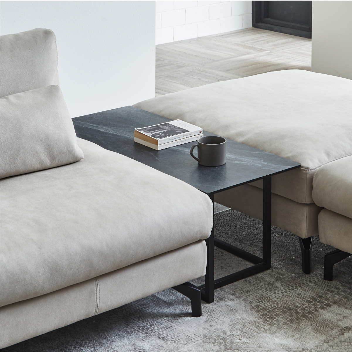 グラシエーロソファの多様なレイアウトに適応できるようにデザインしております。