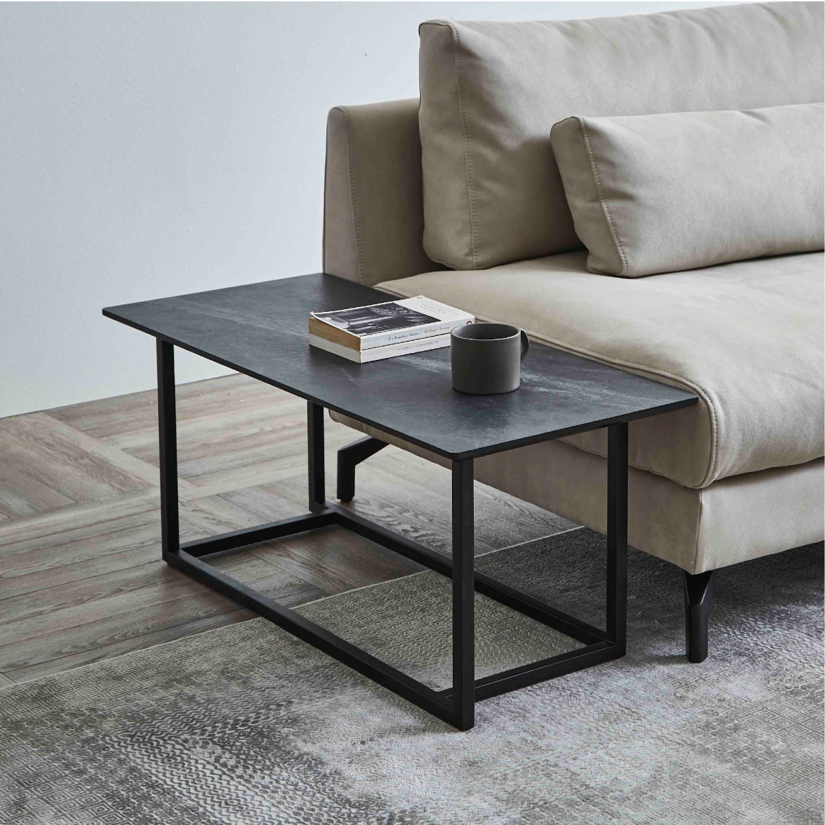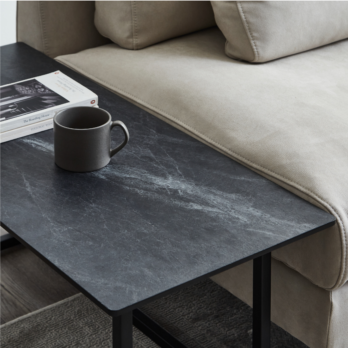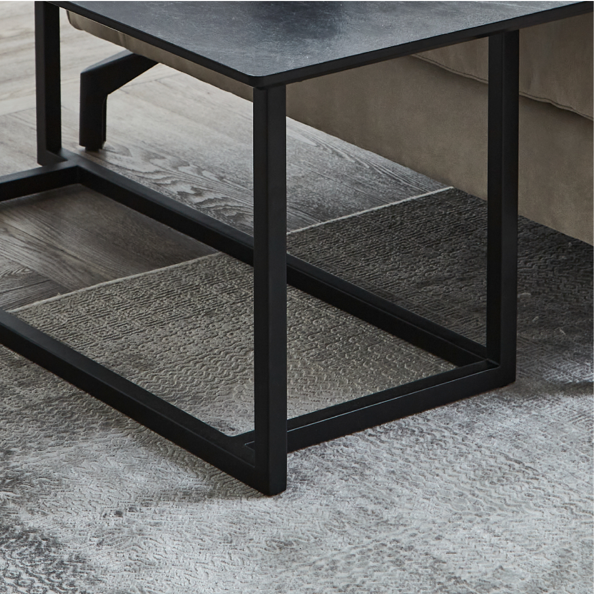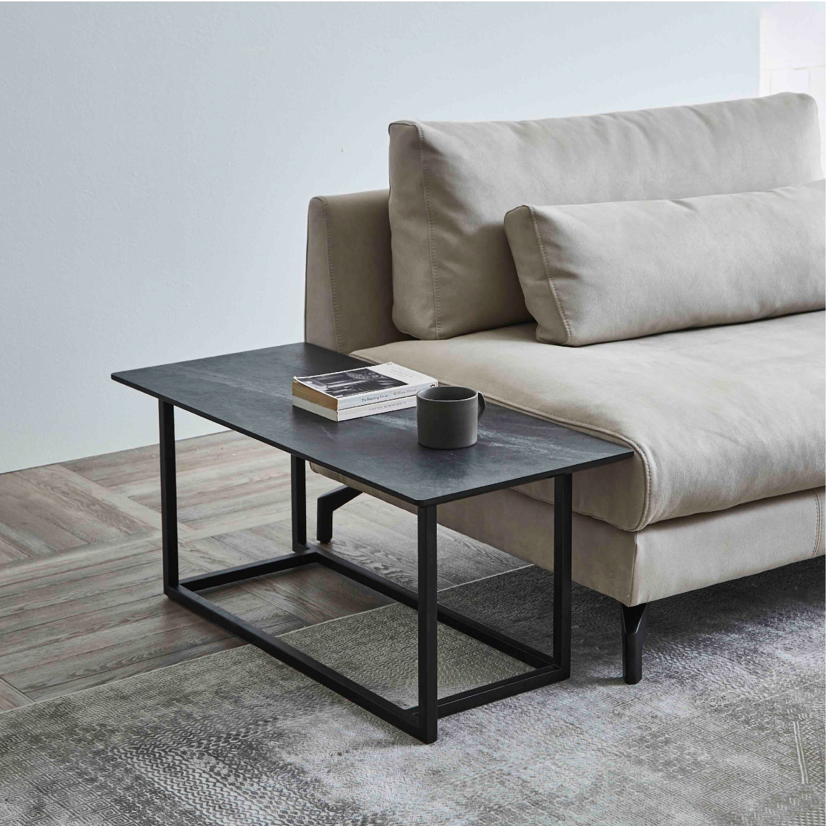 シンプルながらも特徴的なブラックアイアンの脚。様々な空間に馴染みやすく、モダンな印象を与えます。