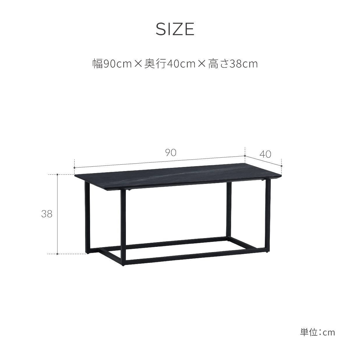 エレガントなブラックストーン調の天板は、メラミン化粧板を採用。上質な素材感を演出します。