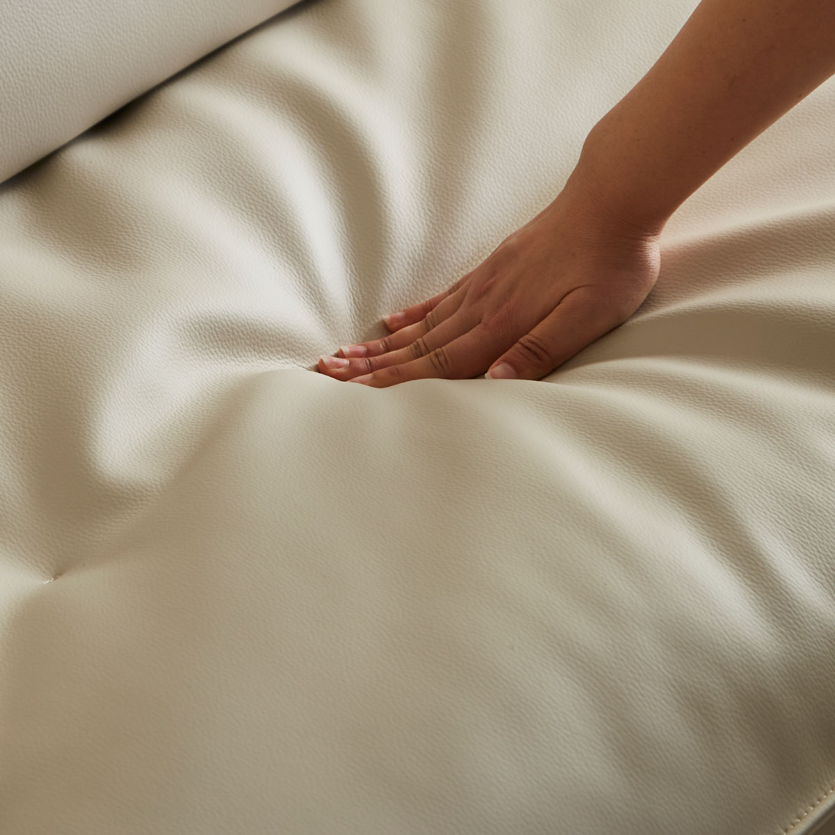 背もたれにはホワイトフェザーを贅沢に使用しており、優しく包み込まれるような座り心地を実現。