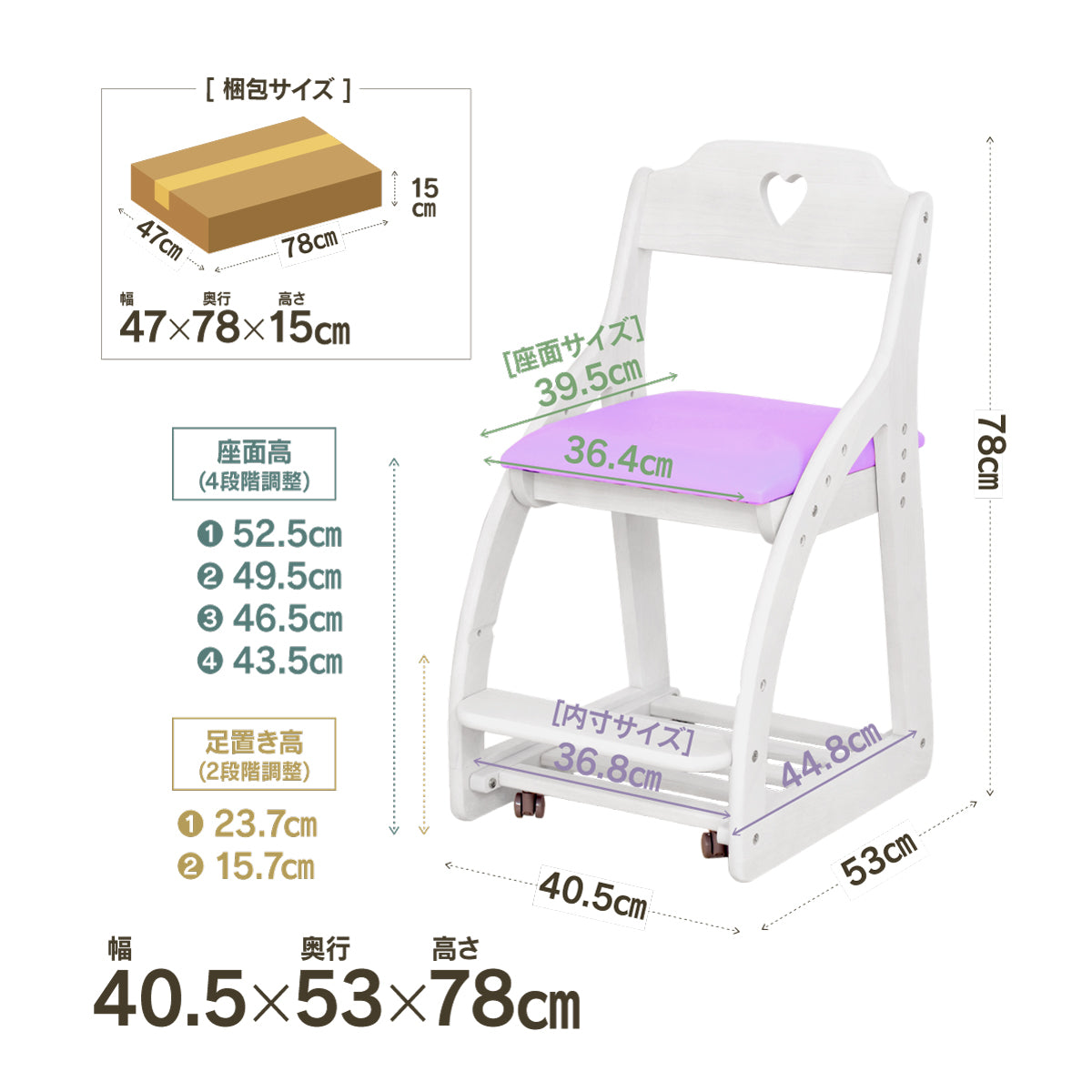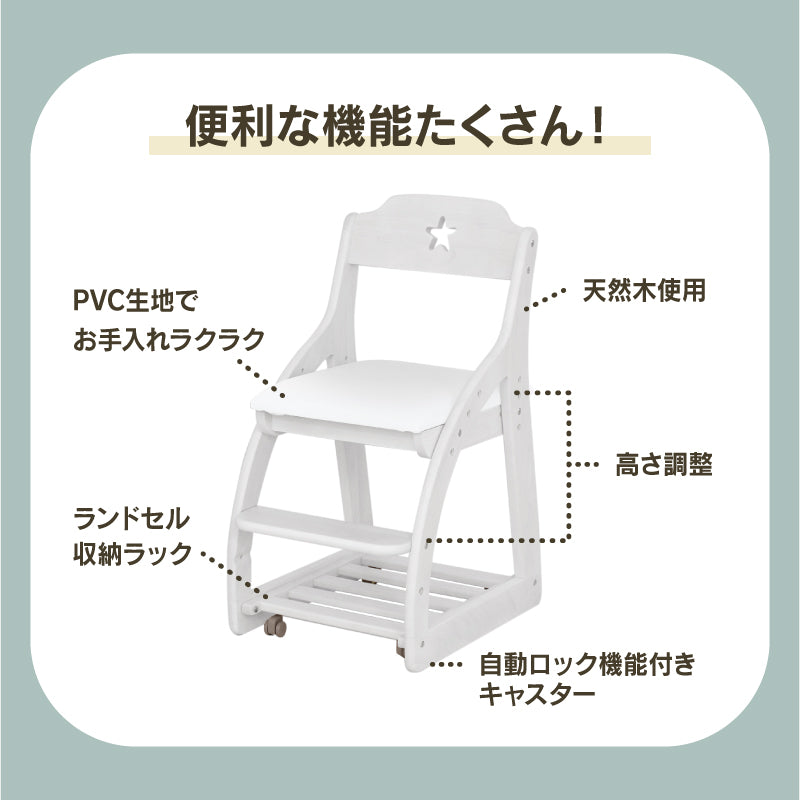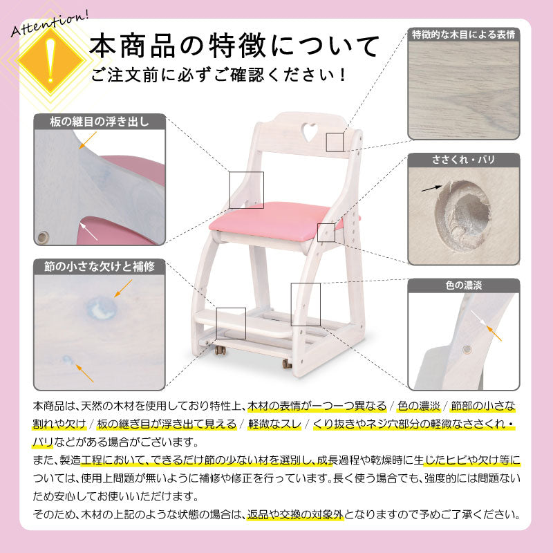 アリエル⑤ 学習チェア キャスターロック ランドセル収納 高さ調節可能 背♡ / 座ピンク 商品コード 469020
