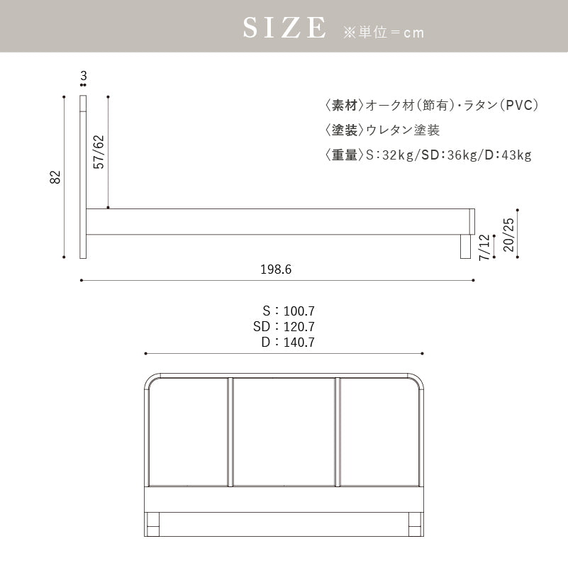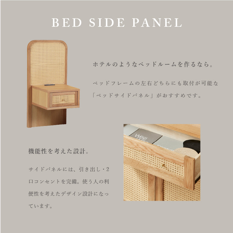商品情報 上部を丸く縁取った柔らかな雰囲気が特徴です。ラタンの開放的な表情と曲線的なフォルムが、寝室に穏やかな印象をもたらします。 脚の高さは2段階に調整することが出来ますので、マットレスの厚みに合わせてお好みの高さでご使用いただけます