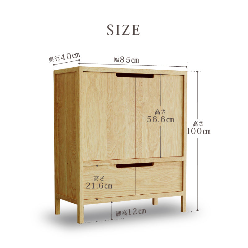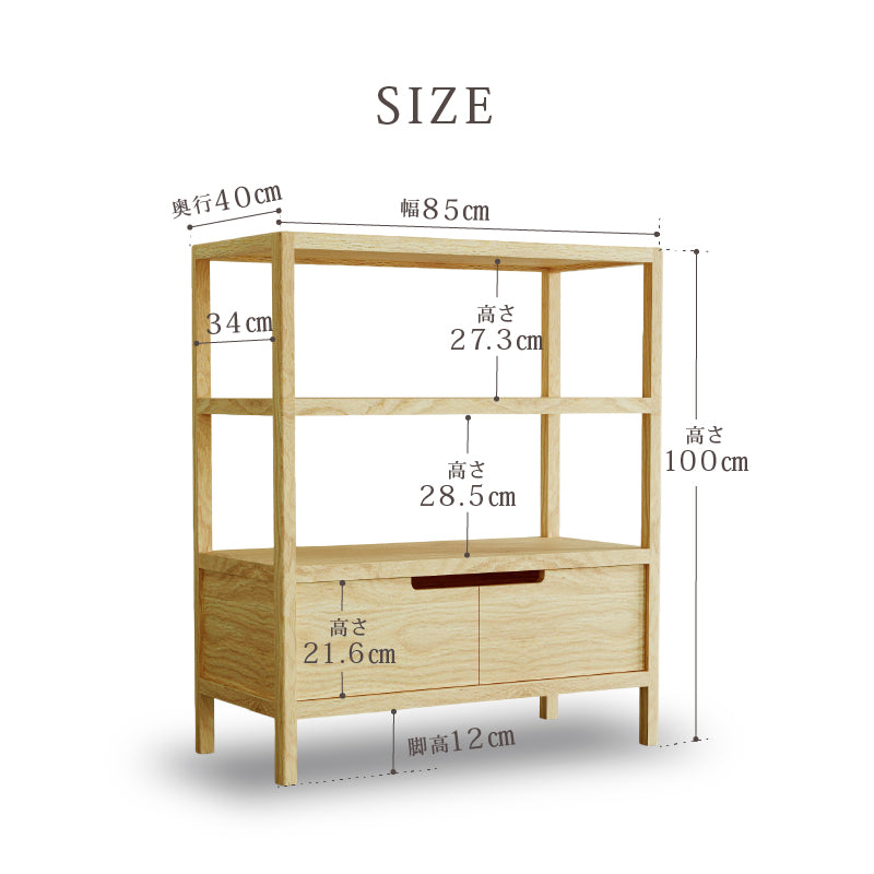 扉と引き出しの2つの収納で、生活感をしっかり隠せるAタイプ。上段の棚板は5段階で高さが調節できます。