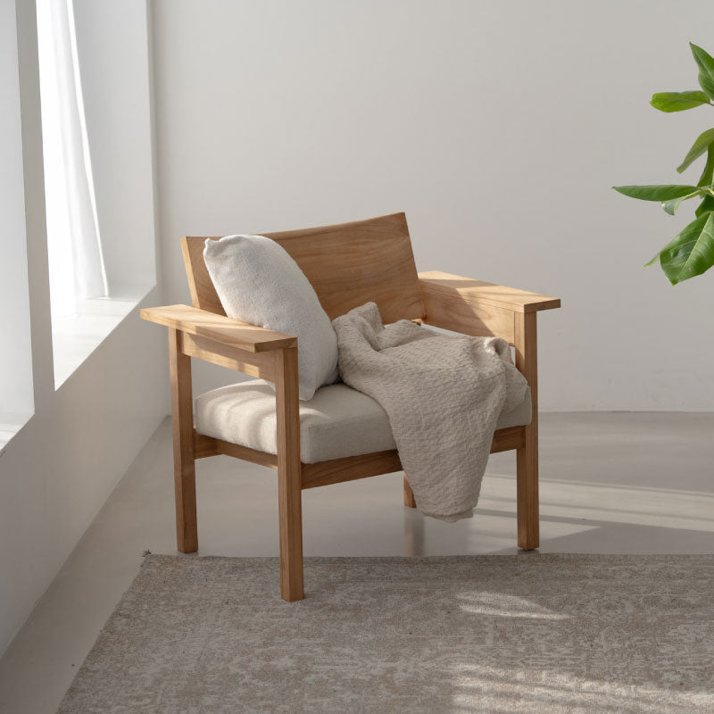 商品情報 シンプルで、木の素材感をダイレクトに感じられるデザインのラウンジチェア。 リビングやラウンジにで合わせやすいな整然とした佇まいで、素材感が際立ちます。