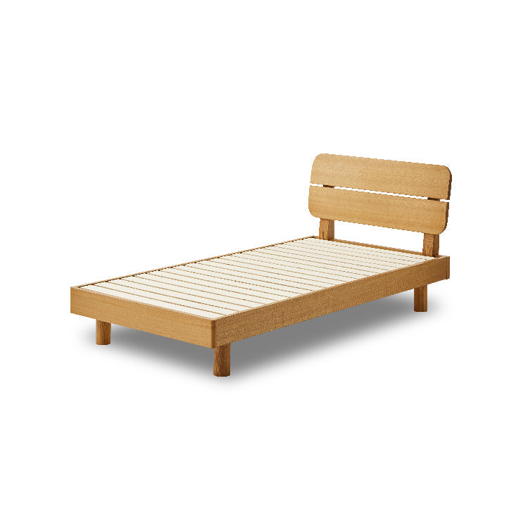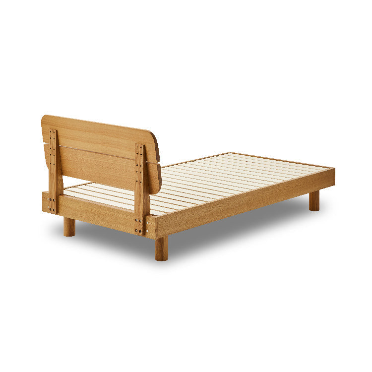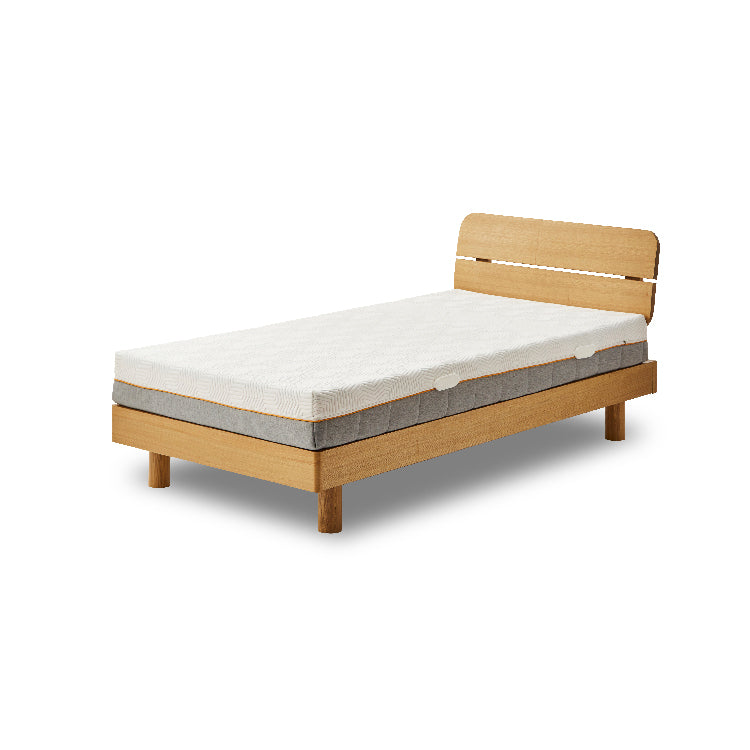 商品情報 丸みをもたせたヘッドボードが柔らかい印象のベッドフレームです。 高さが異なる2種類の脚を付け替えることで、床面の高さを2段階に調整できます。
