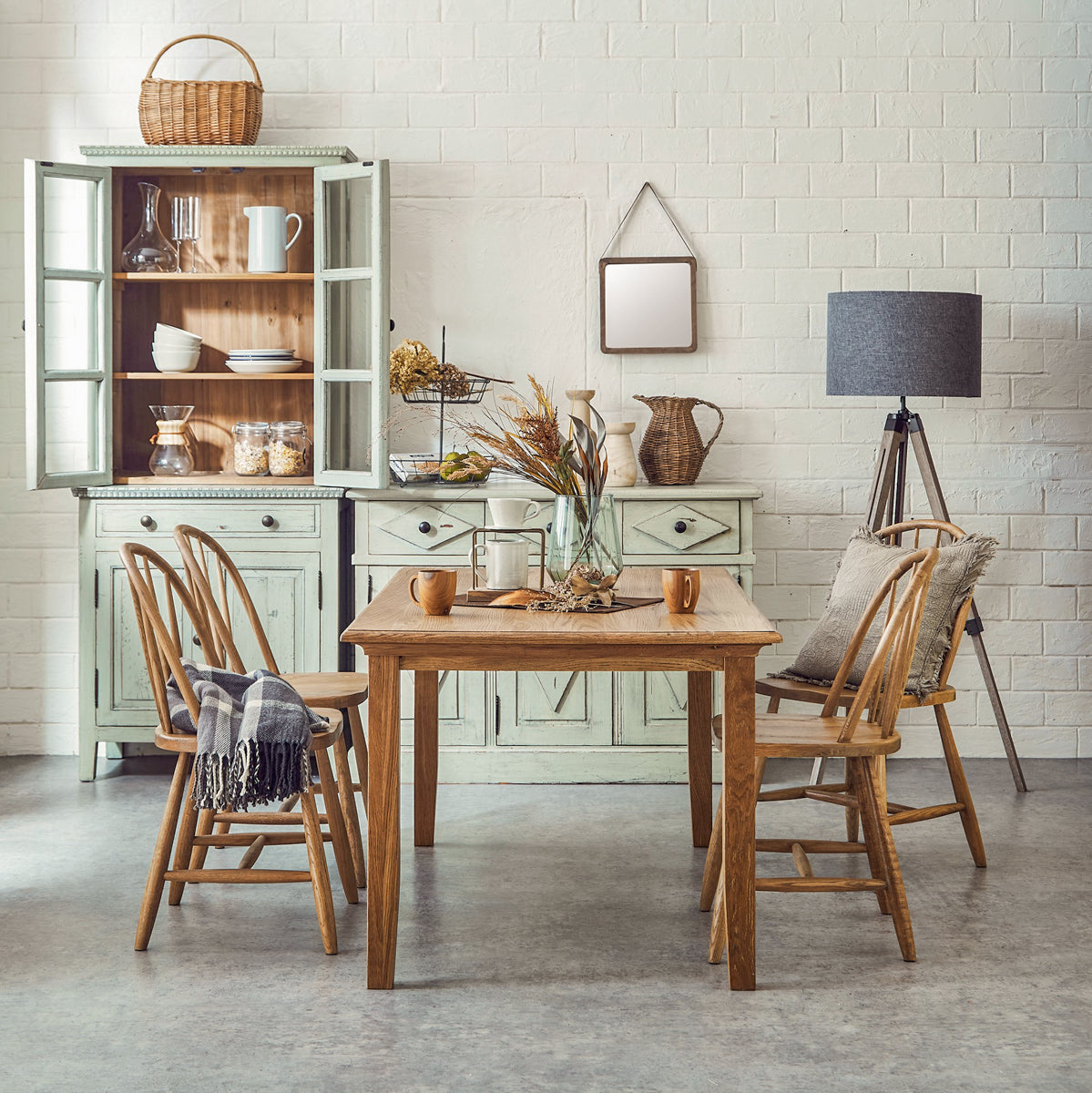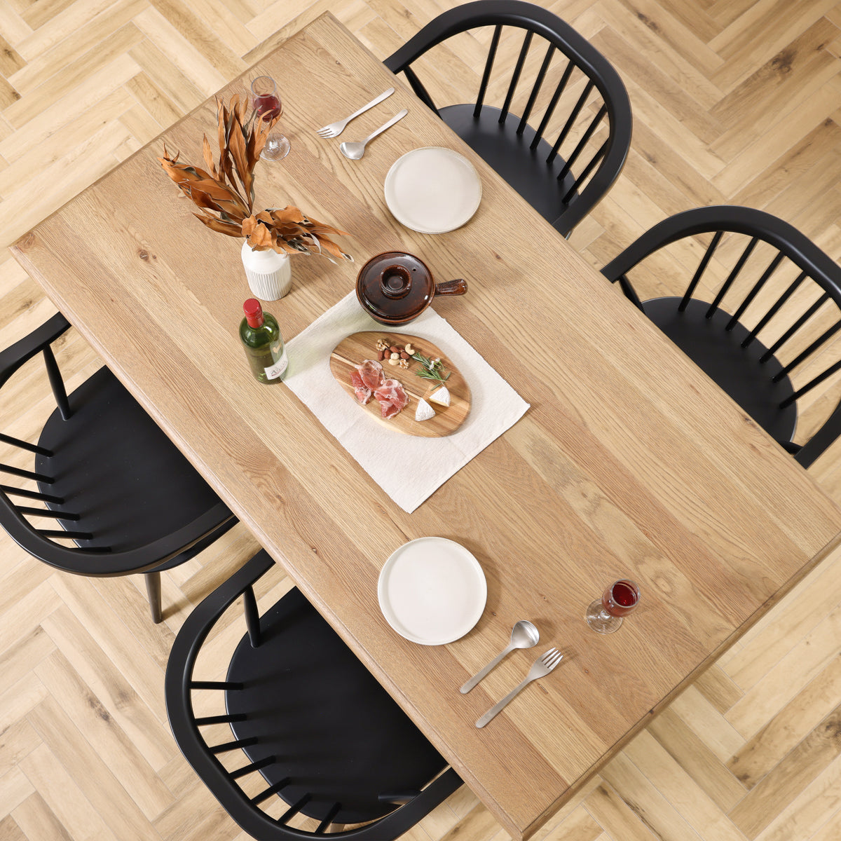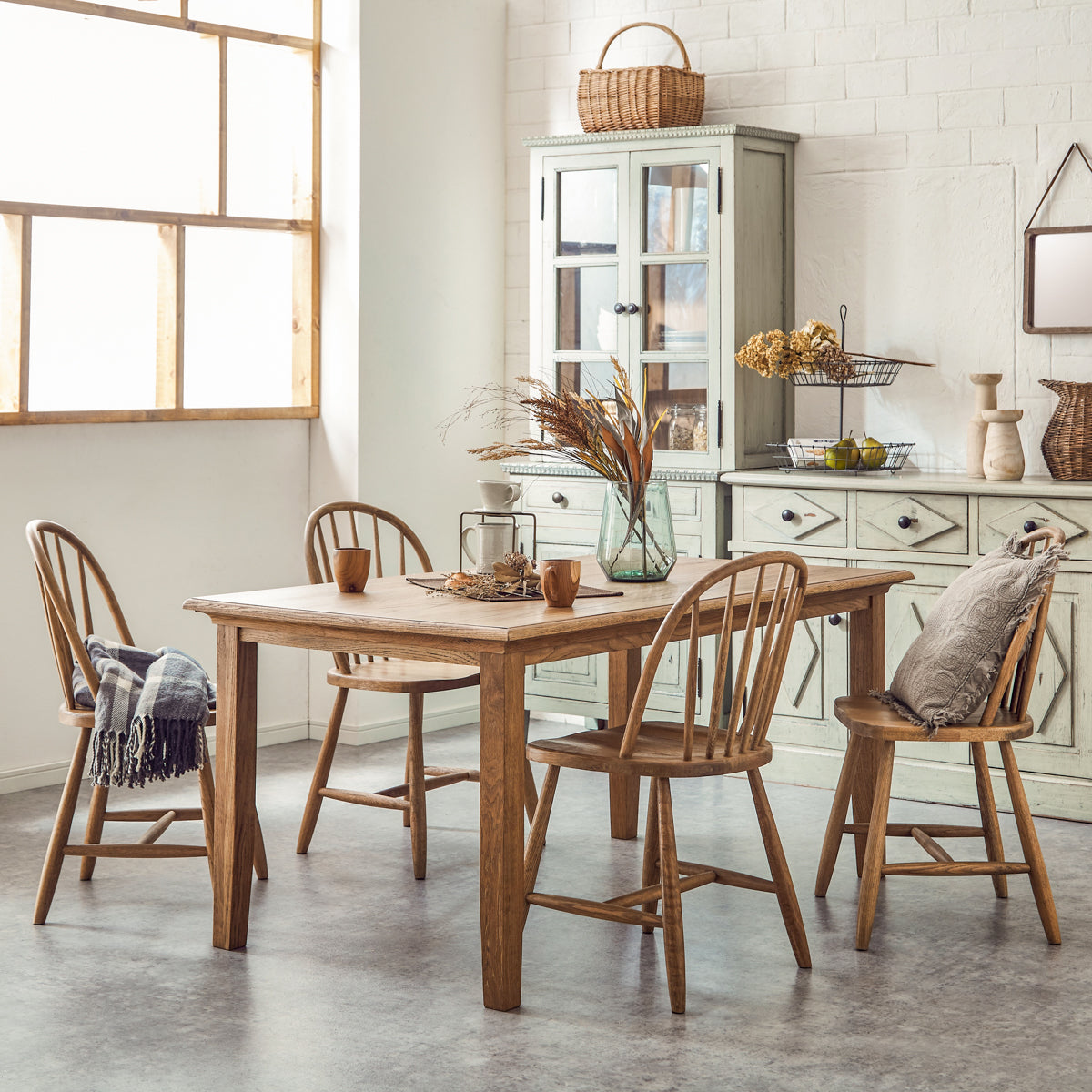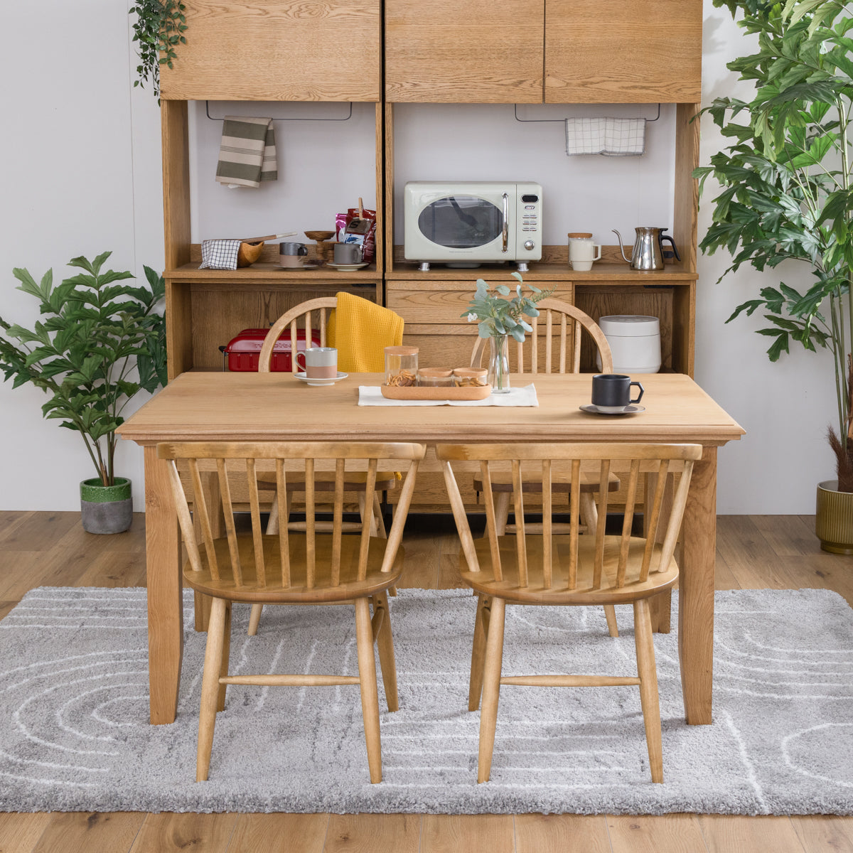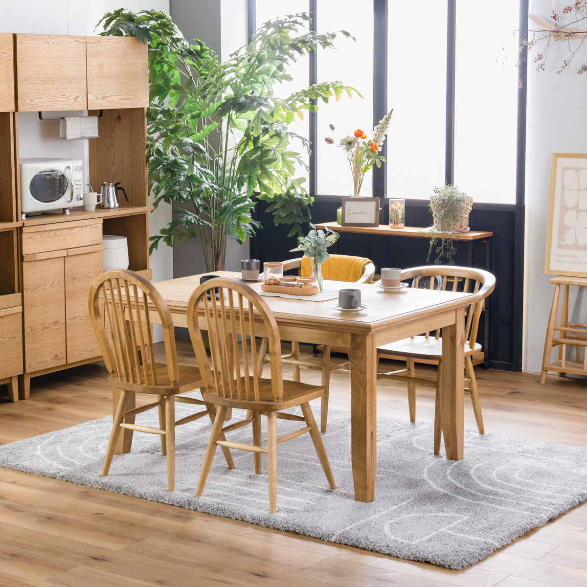 オーク無垢材を使用したどんなお部屋にも合わせやすいダイニングテーブル。 シンプルな中にもクラシックな雰囲気が漂うデザインです。