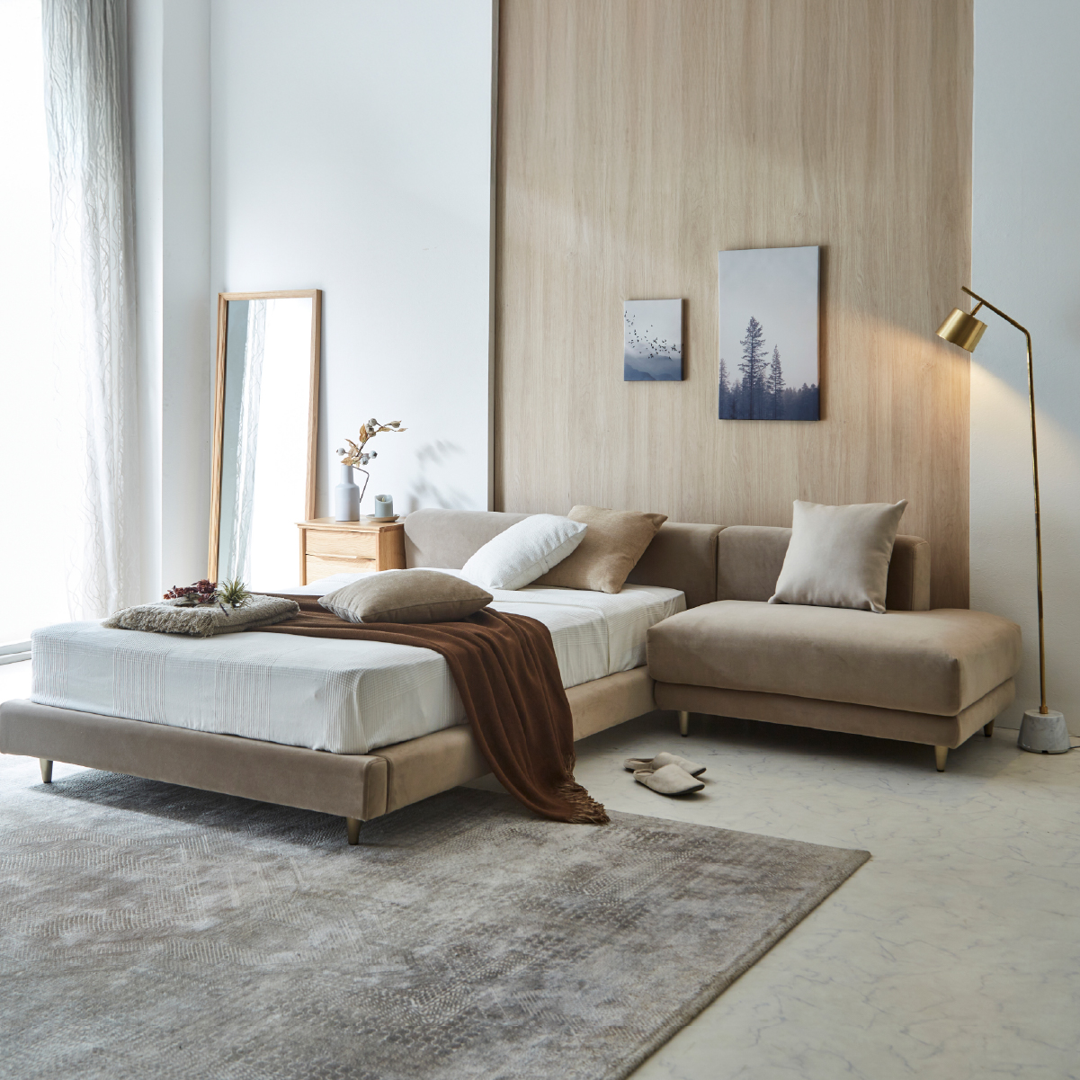 商品情報 ヘッドボードにはウレタンフォームを使用し、背もたれとしても、寝る前のくつろぎ時間に頭を預けても快適です。 また、ヘッドボードは高さを低めに設計することで、お部屋に圧迫感を与えません。 張地には、手触りの良いベルベット調生地を採用。柔らかく優しい触り心地で、よりリラックスタイムの質を高めてくれます。 また、シリーズで配置するだけで、統一感のある上品な雰囲気のお部屋が完成します。
