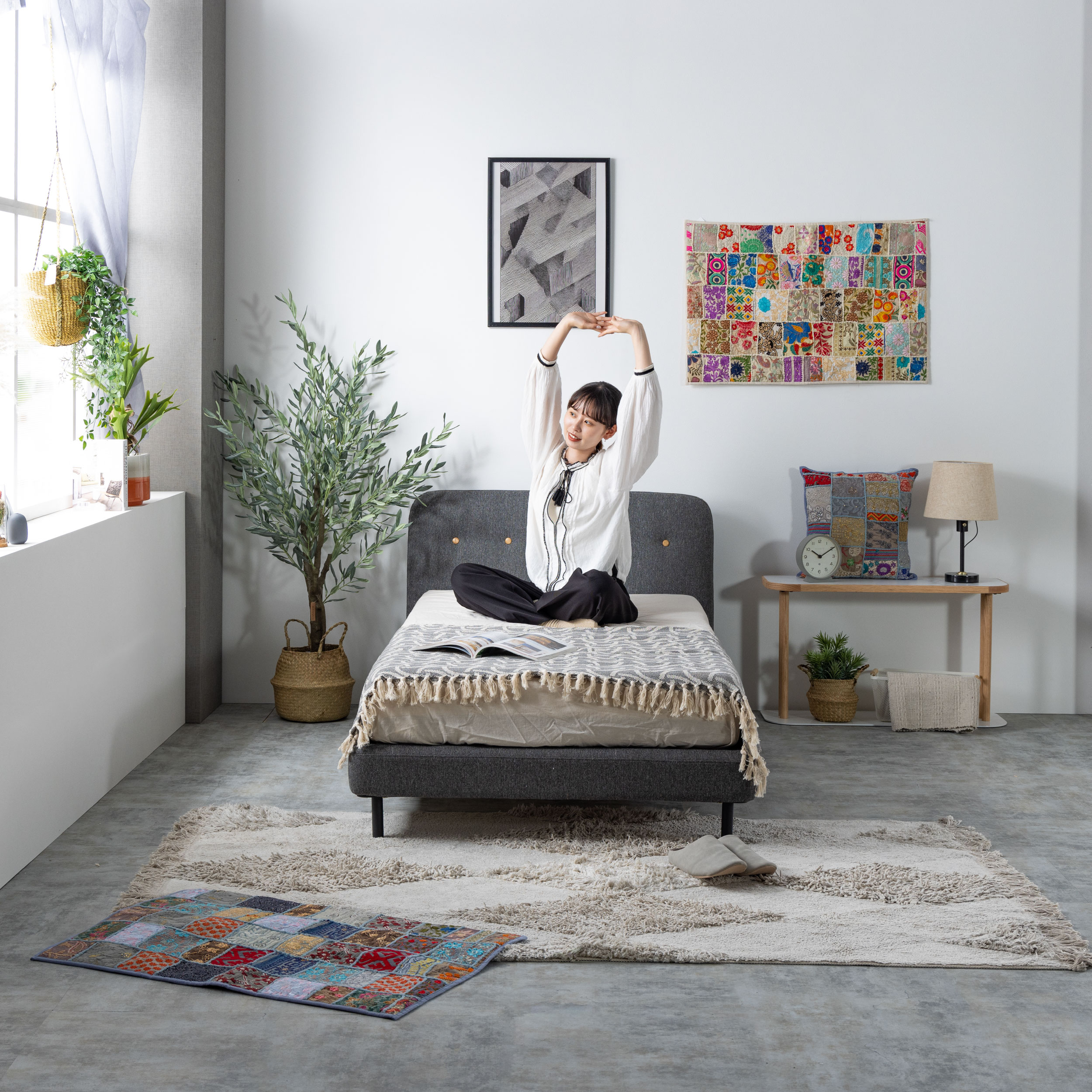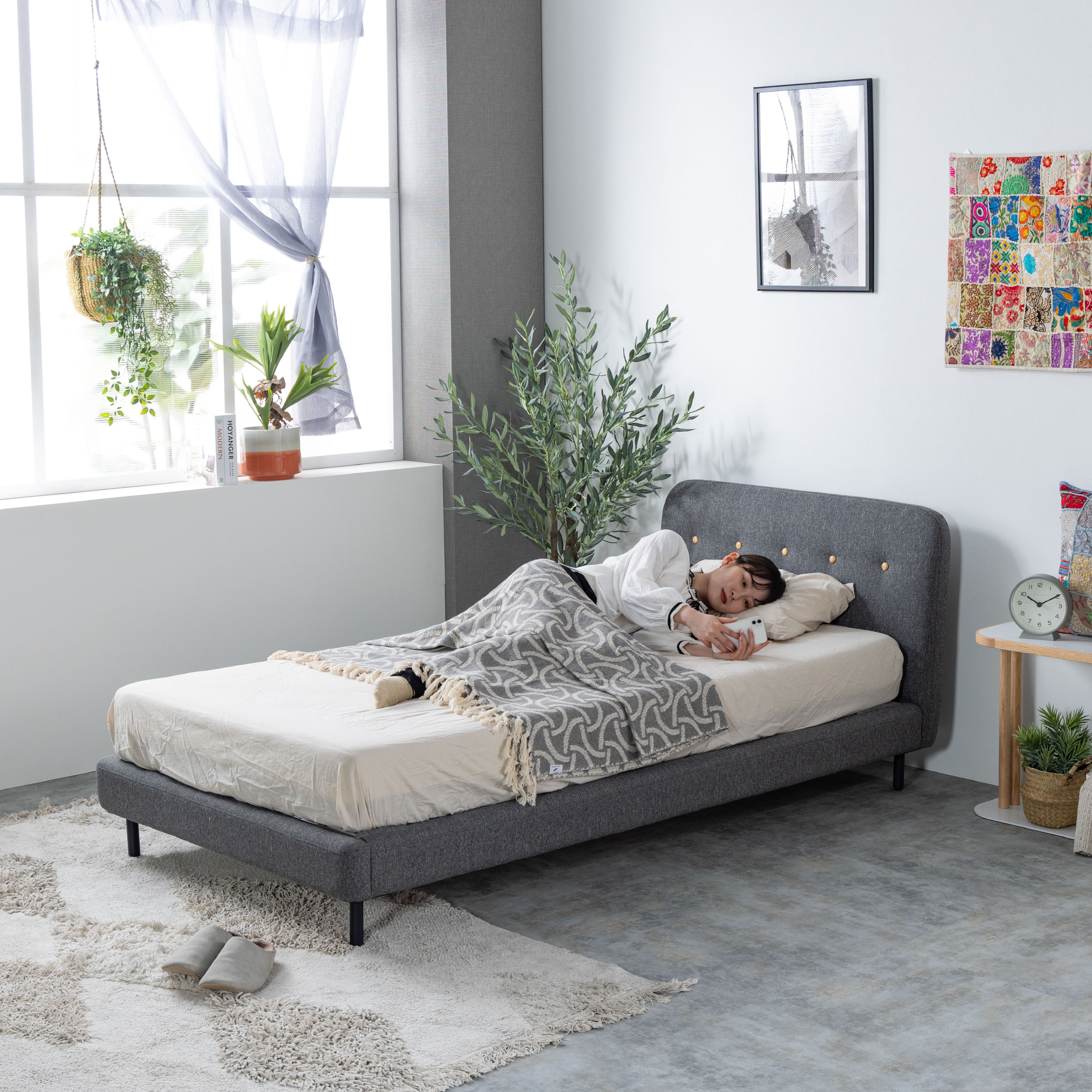 商品情報 ヘッドボードは背もたれの快適さを重視したスノコ式シングルファブリックベッドフレーム。柔らかいクッション素材に、背中をあずけやすいよう設計されています。サイドフレームにも厚みのあるクッション材を使用しているため、足をぶつけても痛くない仕様です。脚高があるためお掃除ロボットも対応可能です。