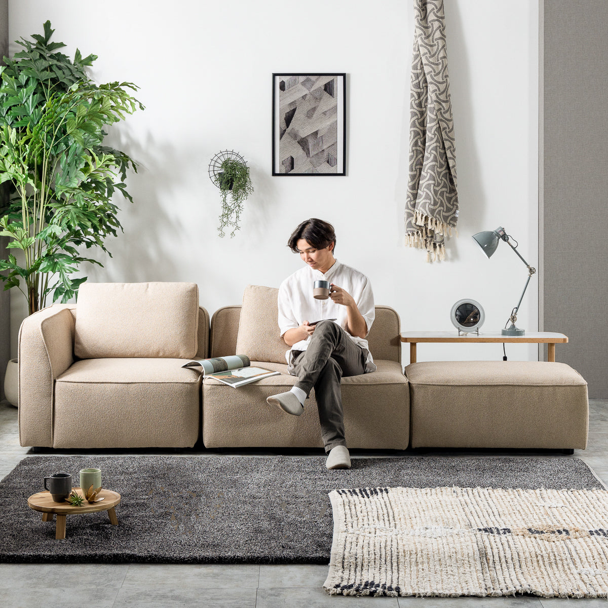 ※こちらの画像は、左からコーナー+1人掛け+オットマンを組み合わせています。カラーはサンドベージュです。