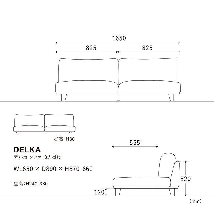 商品サイズ 幅165.0 × 奥行89.0 × 高さ57.0〜高さ66.0cm