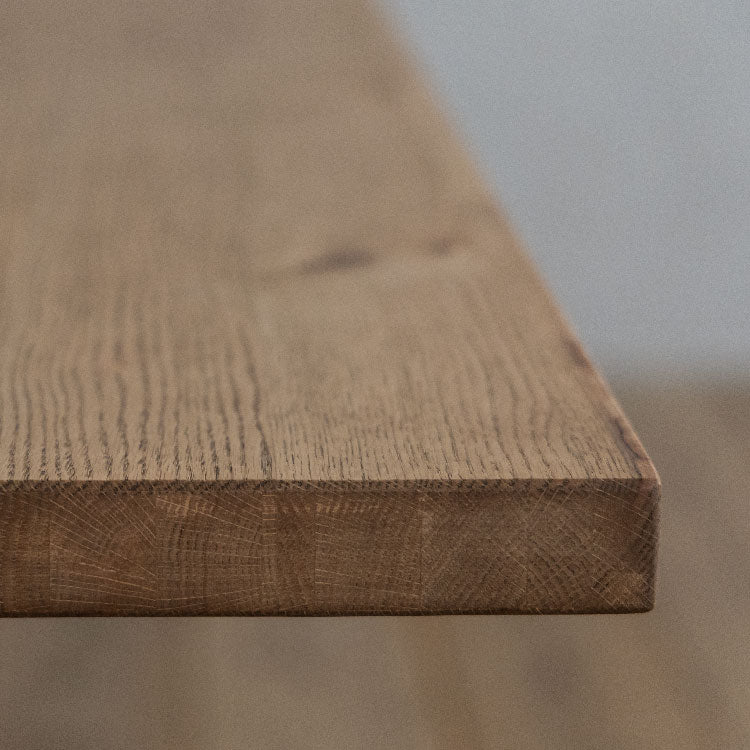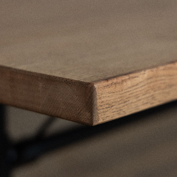 オイル塗装は水分・油分に弱く、長時間放置すると輪ジミやシミの原因になります。木材の表面に施した、無垢の風合いを活かした仕上げです。