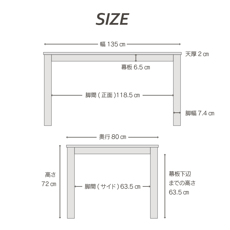 商品サイズ 幅135.0 × 奥行80.0 × 高さ72.0cm