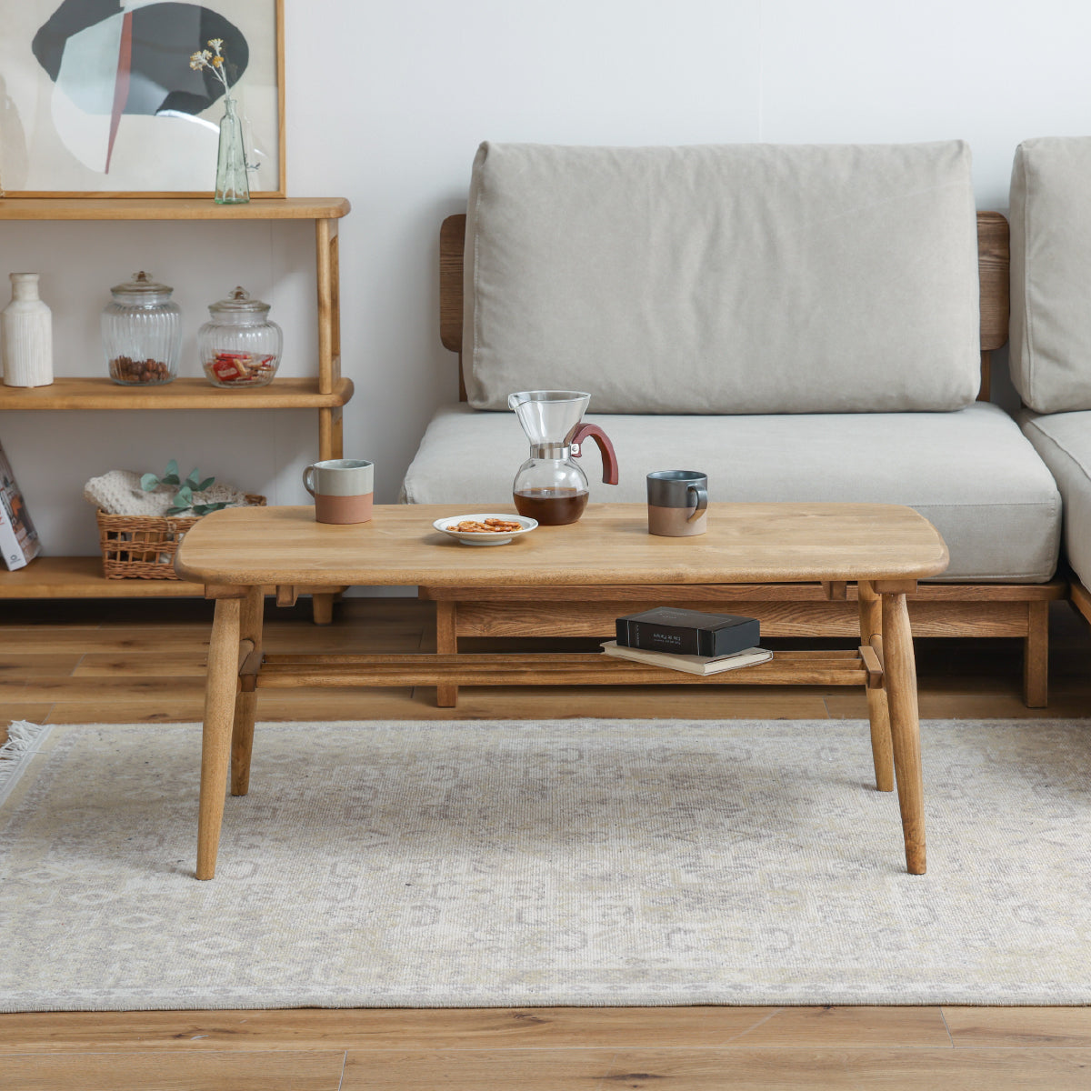 ソファに腰かけてご飯やお茶、パソコン作業をする生活なら、ローテーブルよりこれくらいの高さが最適だと思います。質感もよく、軽いので移動もしやすいです。女性1人でも組み立てできます。全体的に丸みのある柔らかなデザインです。どんな部屋でも合うと思います。