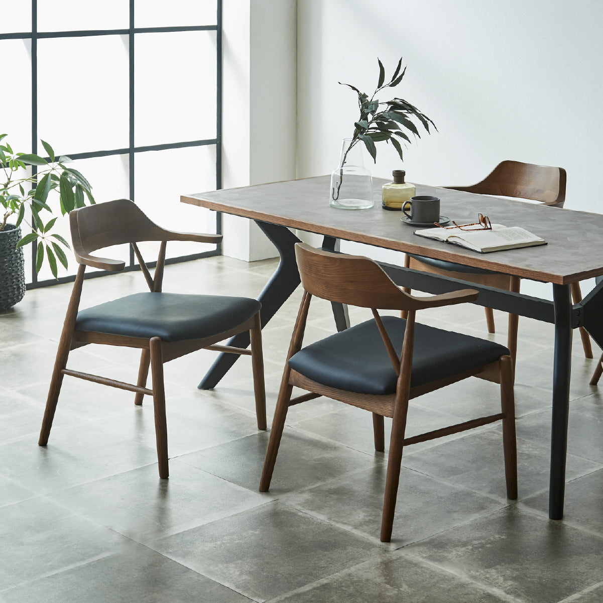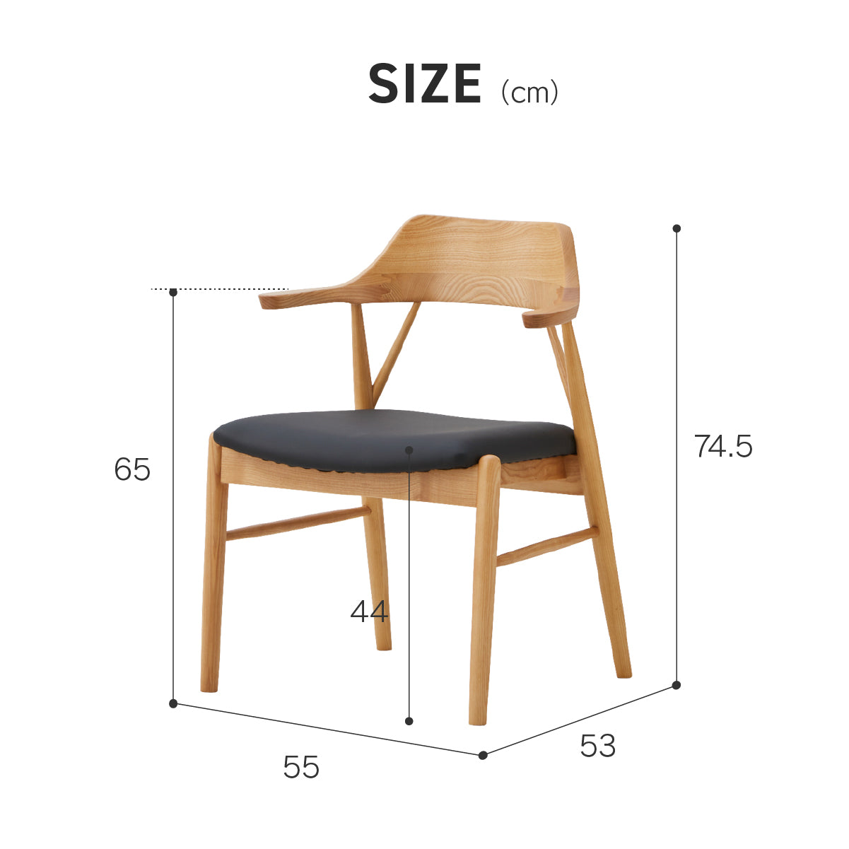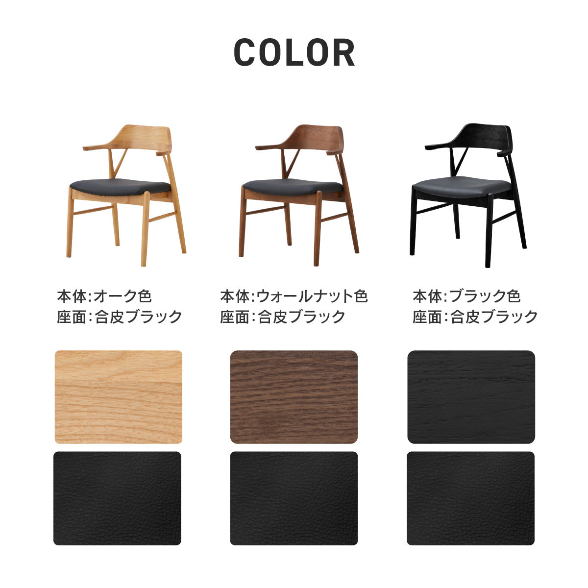 ロジャー ダイニングチェア ちょい肘 ブラック色×合皮ブラック 商品コード 482705