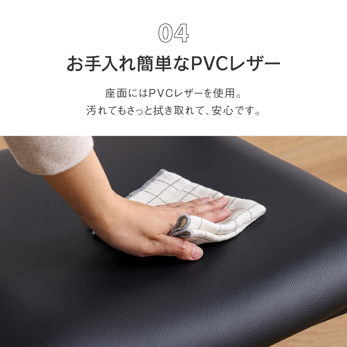 濡れたモノを直接置いた場合や、水、または油などをこぼした場合は速やかに拭きとって下さい。シミや変色の原因になります。 製品に高温のモノを置くと、熱により表面が変化する恐れがありますので、敷物を敷くなどして気をつけてください。 アルコール、シンナー、ベンジン等、有機溶剤を含むものを使用しないでください。変色、変形の原因になります。 底のザラついているモノ(陶磁器など)を置いたまま滑らせないでください。傷の原因になります。ご使用方法によっては、回転盤やキャスター等の金具の磨耗が早くなる可能性があります。また、金具、接合部の緩みや破損が早くなる可能性があります。定期的に接合部や金具に緩みが無いかチェックしてください。破損やケガの原因になります。家具に強い衝撃を与えないでください。破損やケガの原因になります。家具(イスやソファーなど含む)の上に立ったり、踏み台代わりに使用したり、不安定な姿勢で腰掛けたりしないでください。座る製品に勢いよく腰掛けたりしないでください。破損やケガの原因になります。イスやソファーなどの場合、肘や背もたれの上に腰掛けたり、乗ったりしないでください。また、傾けて座ったりしないでください。破損やケガの原因になります。