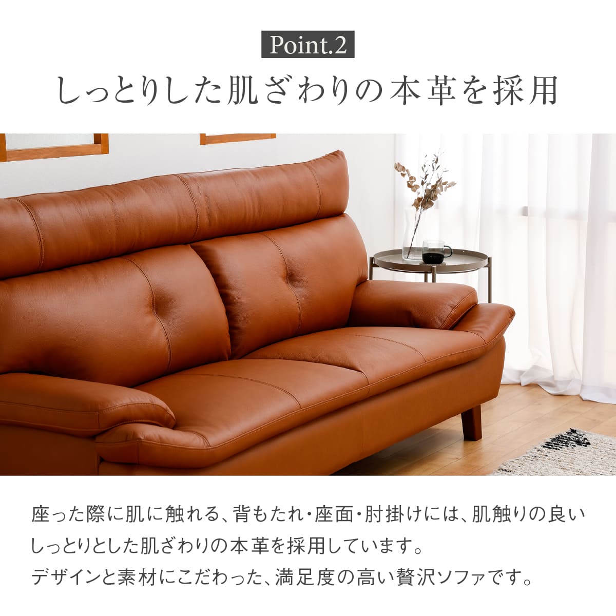 商品情報 しっとりした質感が特徴的な本革を使用したソファ