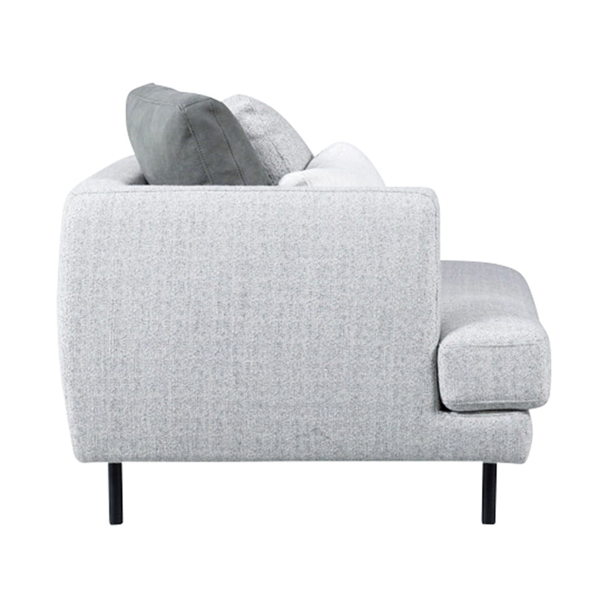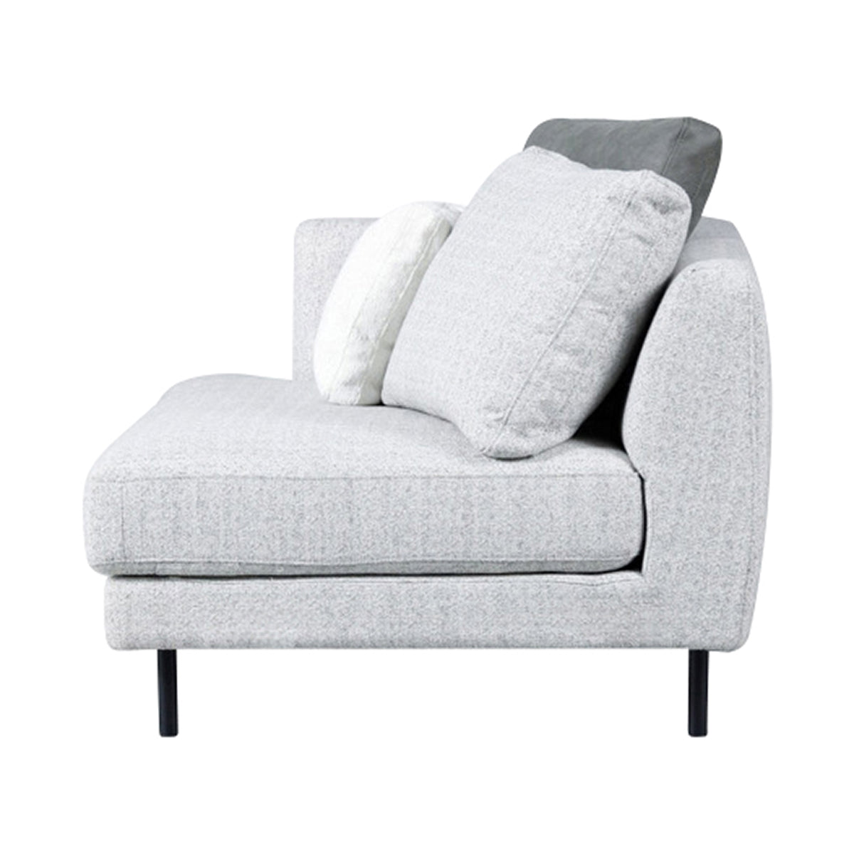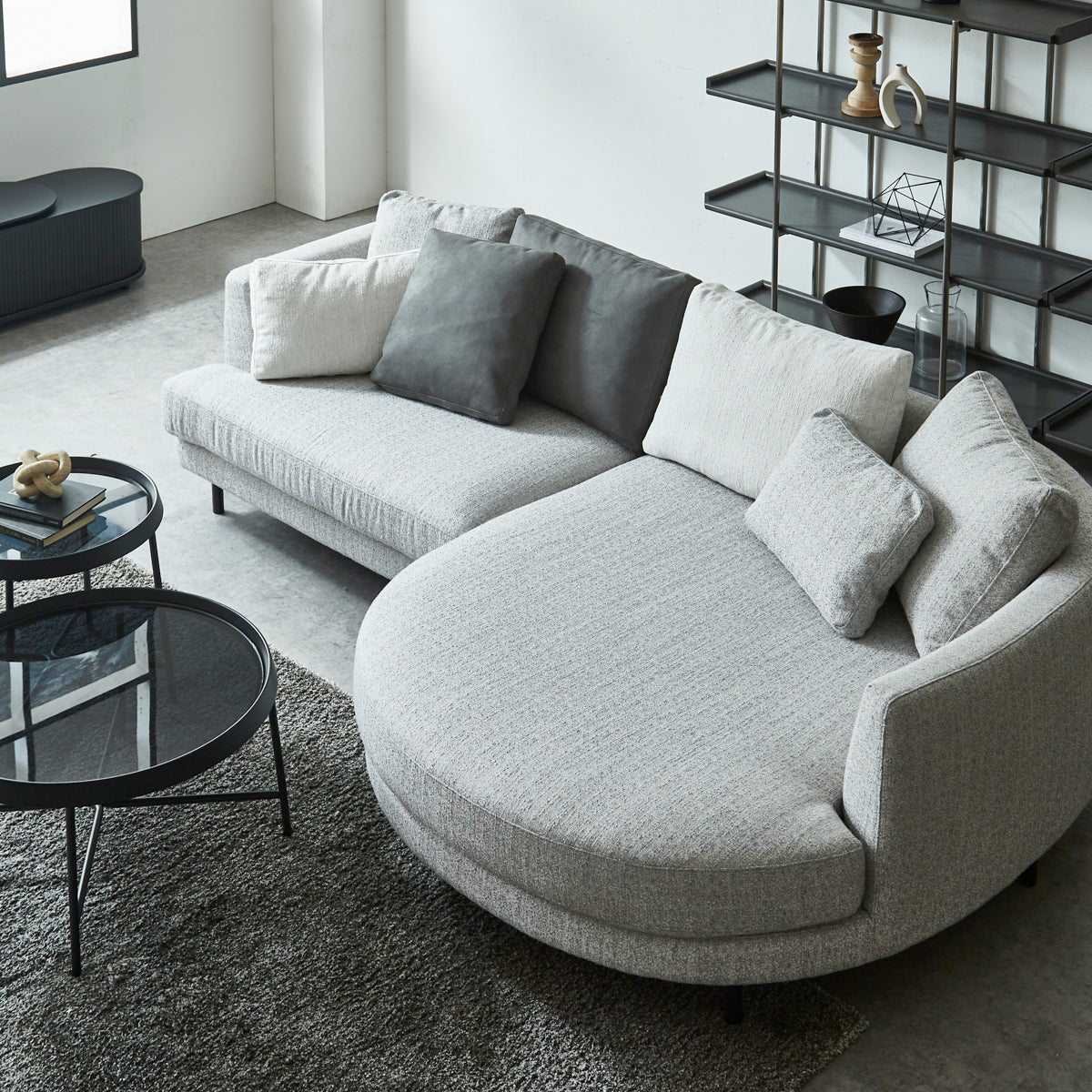 商品情報 張地や大きさの異なる背クッションは、空間にアクセントをもたらし、座り方に合わせてクッションを自由にくつろげます。 ベーシックなグレー系のファブリックとブラックの脚で、様々なインテリアに馴染みやすいデザインです。