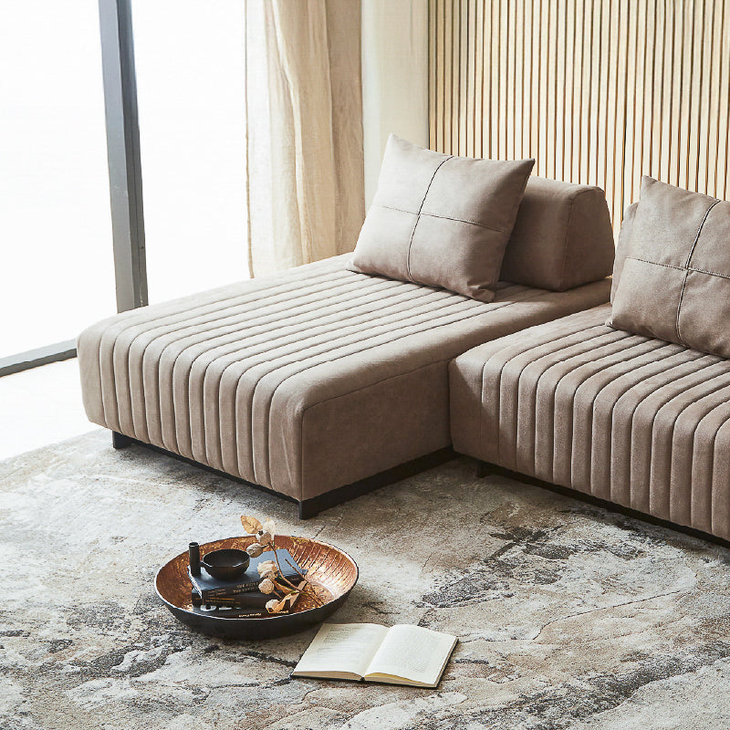 洗練されたモダンデザインのアイランドソファ。ストライプ状のステッチが、お部屋にアクセントを添えます。