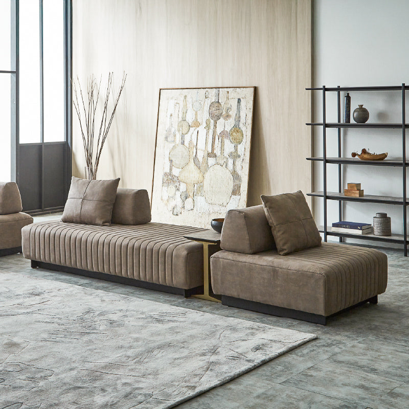 洗練されたモダンデザインのアイランドソファ。ストライプ状のステッチが、お部屋にアクセントを添えます。