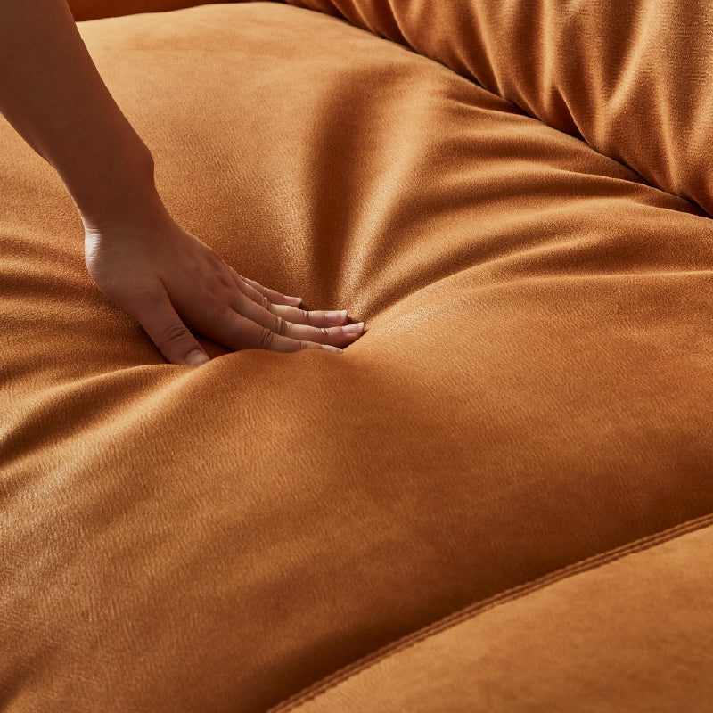 開梱時に稀に表面のシワ、変形等が見られる場合がありますが、輸送中におこったものなので、ご使用されるうちに自然に回復します。また、叩いたり張地を軽く引っ張ると回復も早くなります。