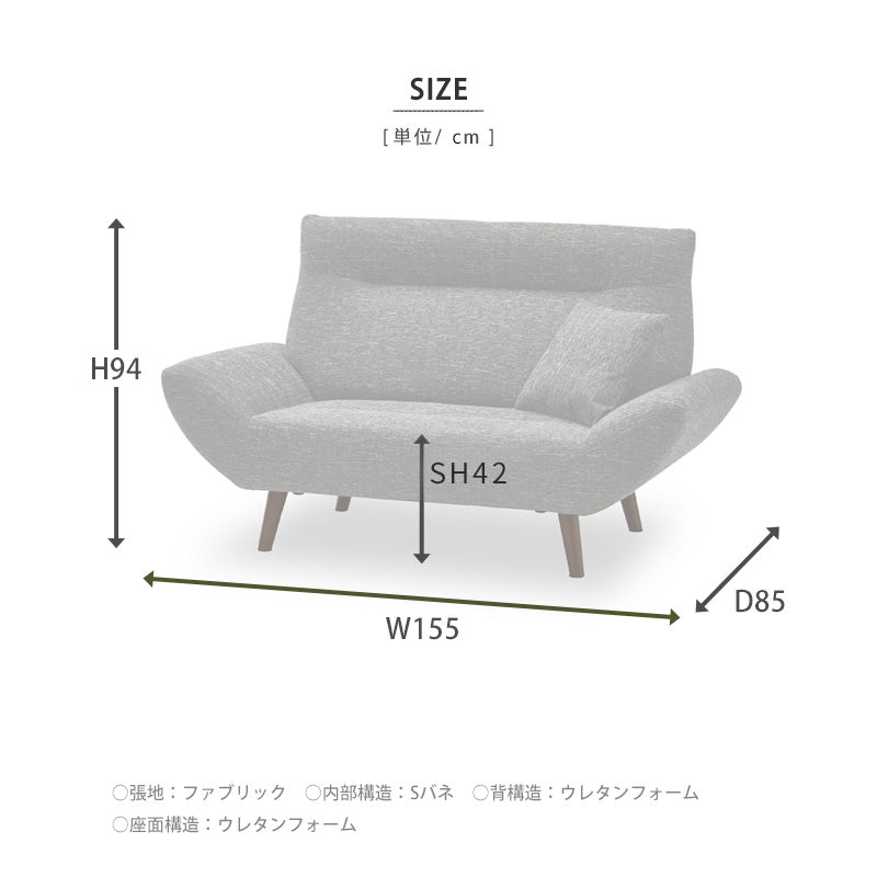インスタ 2人掛けソファ 幅155㎝ クラウドグレー 商品コード 296204
