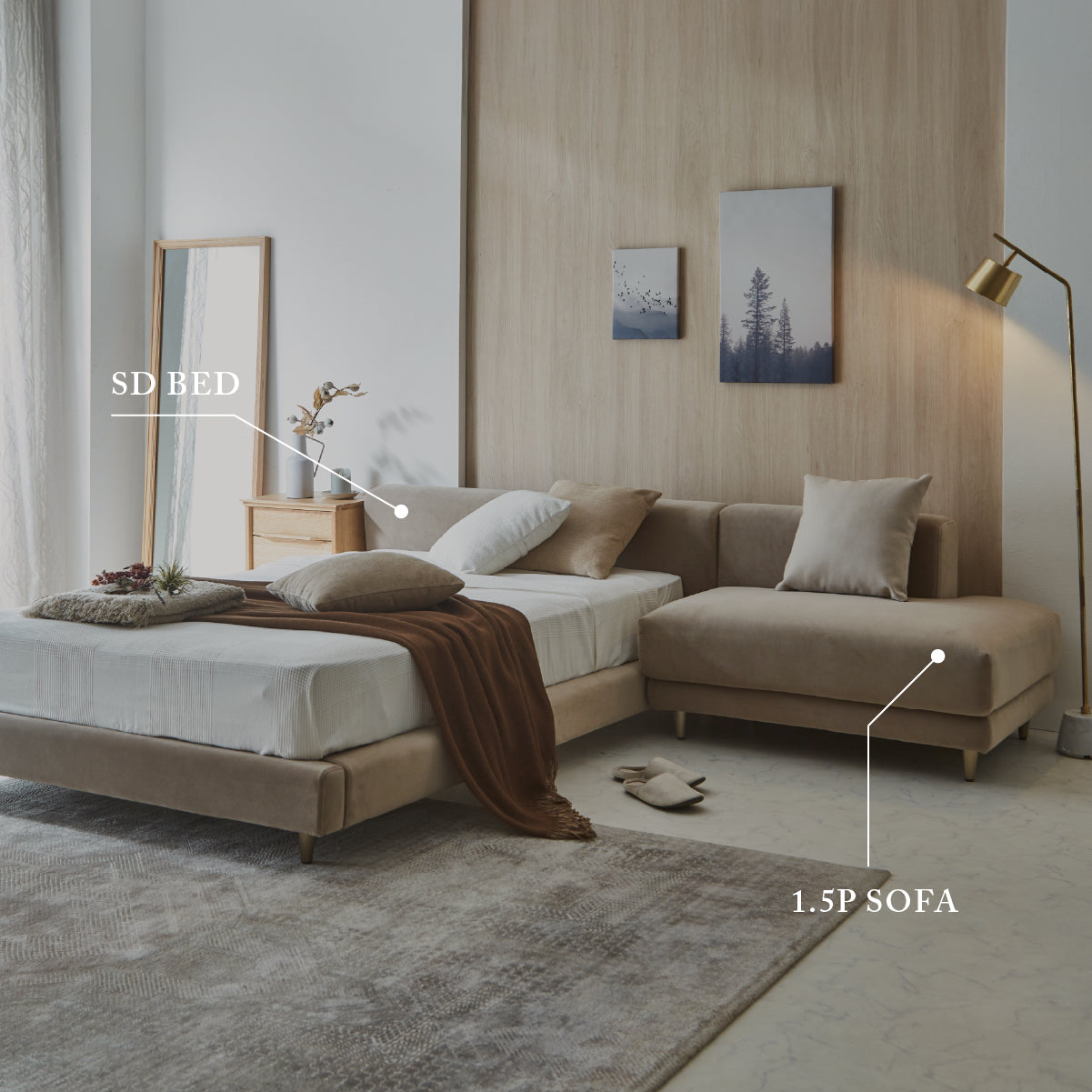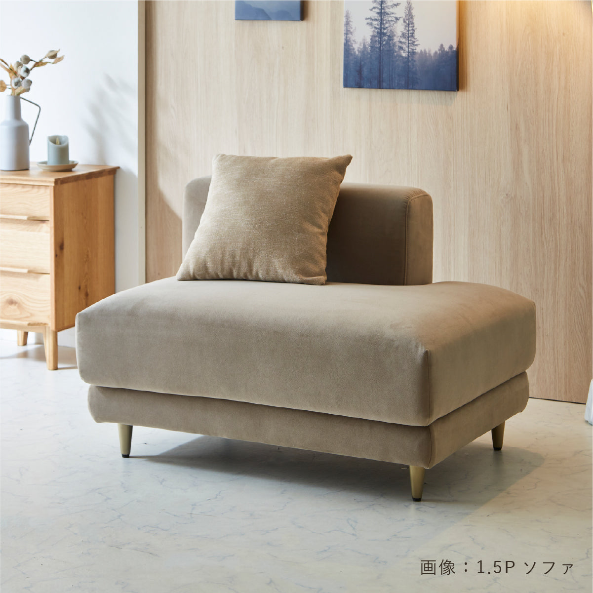 商品情報 幅広い方に受け入れてもらいやすい、硬すぎず柔らかすぎないもっちりとした座り心地に仕上げました。寝室にはもちろん、1人暮らしのお部屋のリビングや、コントラクトにもうってつけです。 張地には、手触りの良いベルベット調生地を採用。柔らかく優しい触り心地で、よりリラックスタイムの質を高めてくれます。 また、シリーズで配置するだけで、統一感のある上品な雰囲気のお部屋が完成します。