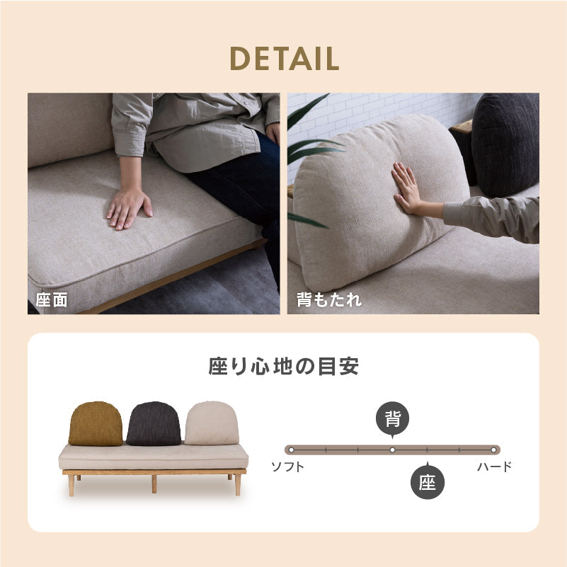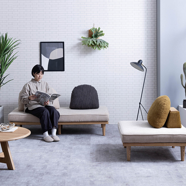 製品の記載サイズにつきましては、手作りによる生産のため、加工・組み立て等の微妙な誤差やクッション部分のふくらみの程度により違いが生じる場合がございます。 室内にて通常の頻度でご使用いただけることを前提に企画、設計しております。 過度な使用頻度や過酷な状況、屋外等でご使用いただくと破損や劣化が早まる可能性があり、保証の規定に則れない場合がございます。安全のため破損、変形した家具は使用しないでください。