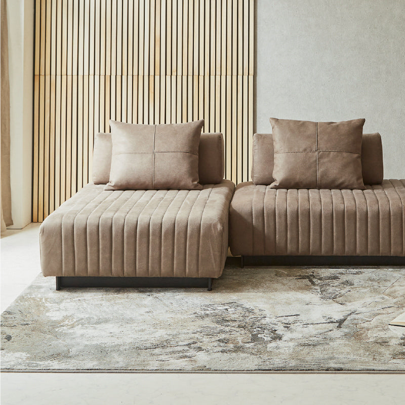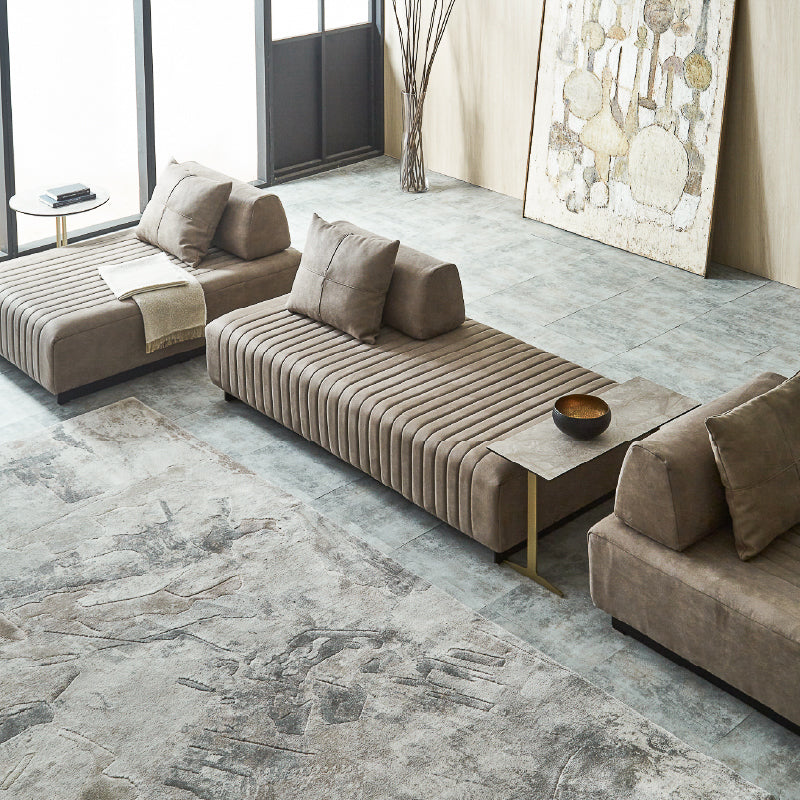 洗練されたモダンデザインのアイランドソファ。ストライプ状のステッチが、お部屋にアクセントを添えます。