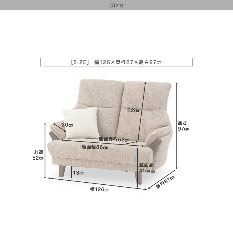 テノール 2人掛けソファ 幅126㎝ ベージュ 商品コード 329469