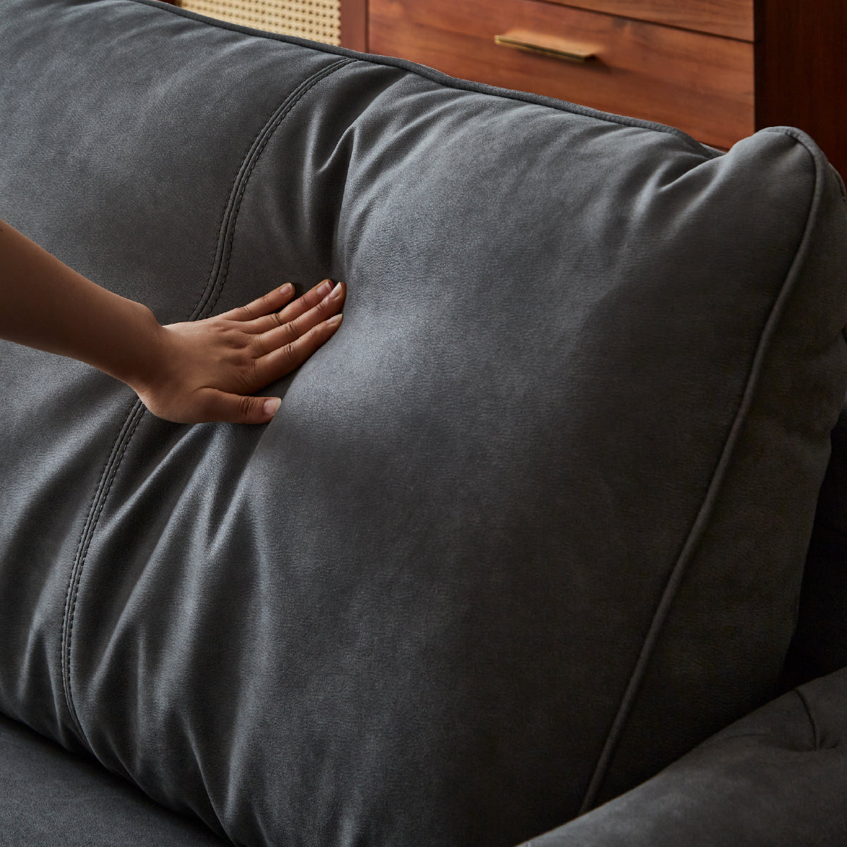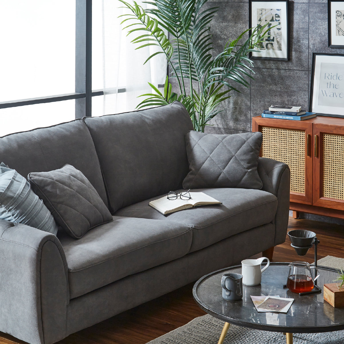 商品情報 エレガントなデザインのイタリアンソファです。 特徴的な肘部には、丸みのあるディテールにステッチとしぼりを効かせることで、より上品で高級感あふれるソファに仕上げています。座面よりも背当たりを柔らかくすることで腰へのフィット感を高め、長時間の着座にもおすすめです。キルト加工のハンドクッションは、デザインアクセントとしてだけでなく、枕にしたり腰に当てて座ったり快適に過ごすためにもご使用いただけます。