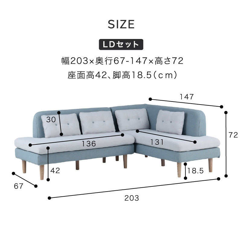 ラニス ダイニングソファ ソフトブルー / 右コーナー 商品コード 429744