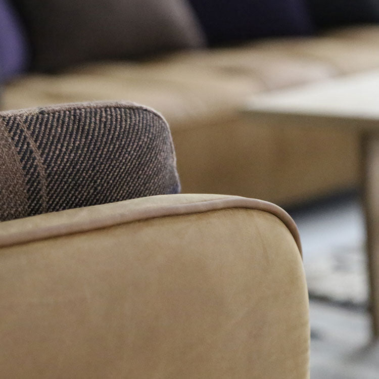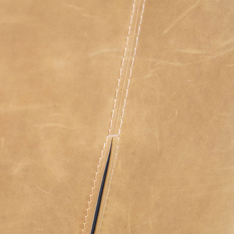 張地に使用している革は、また革本来の表情や風合いを残すために、革の表面に過度な処理・コーティングを施していません。その中でも張地がオイルレザーのものは皮の処理段階でオイルを加え、柔らかくしっとりした少し起毛感を感じさせる仕上げにしています。そのためナチュラルマーク(傷痕)や変色等が見られ、多くの場合一点一点個体差があります。