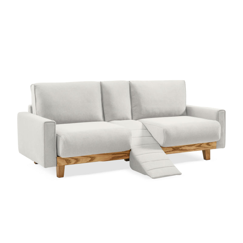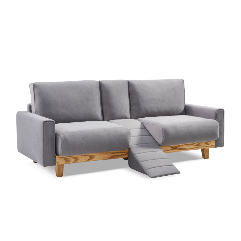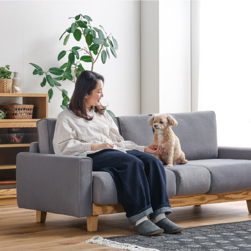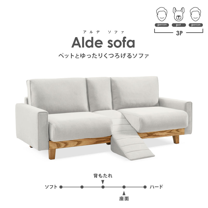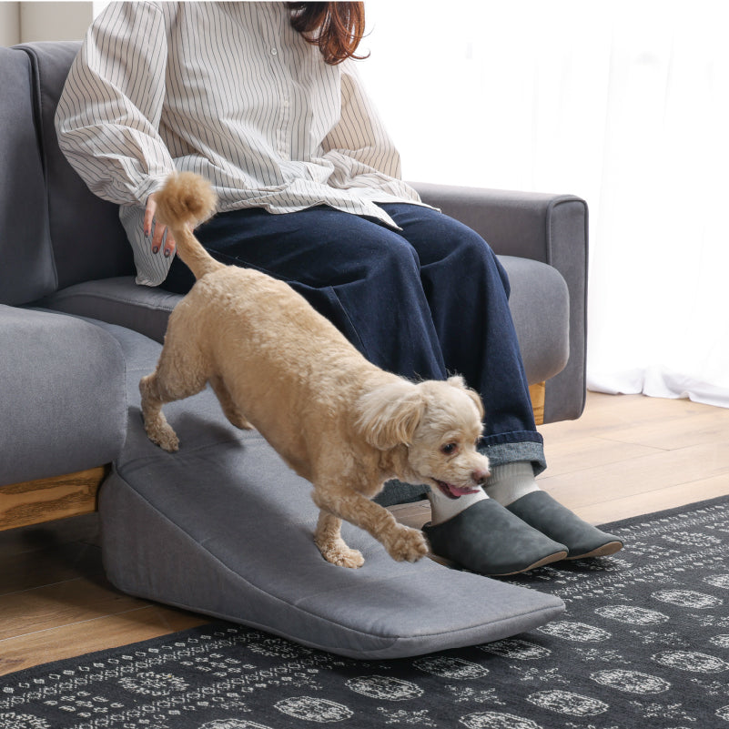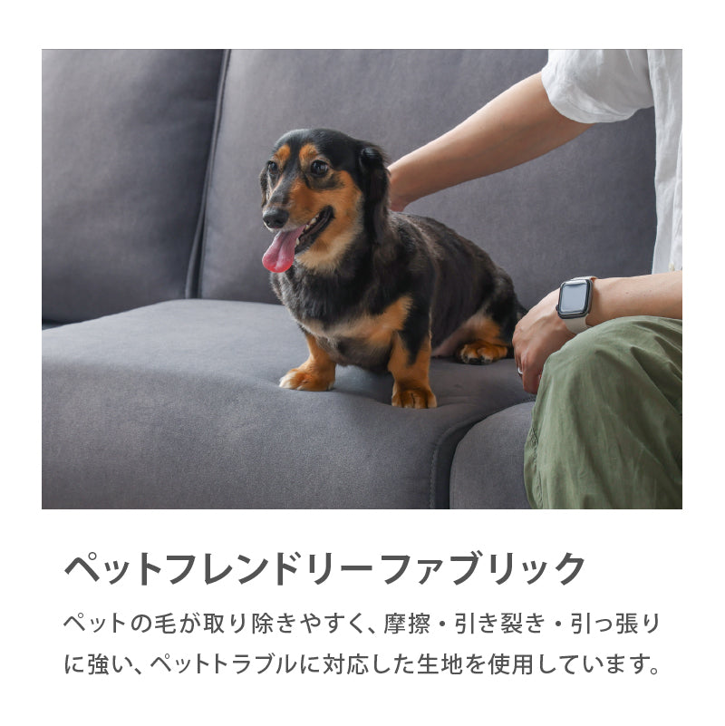 商品情報 「ワンちゃんと一緒に…」を叶えたペット席付きソファ。真ん中の座面を開くと、ペットスロープに早変わり。