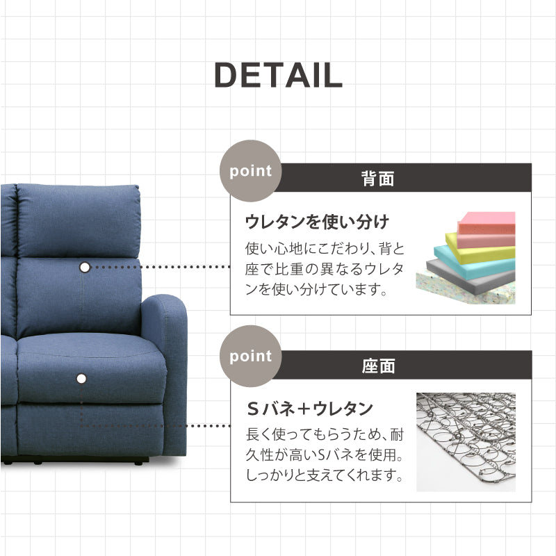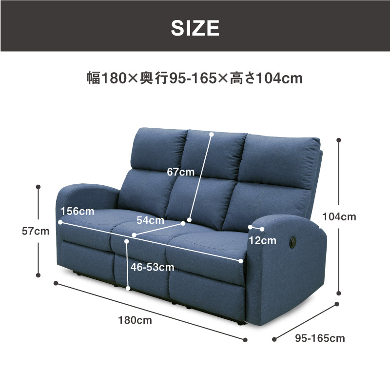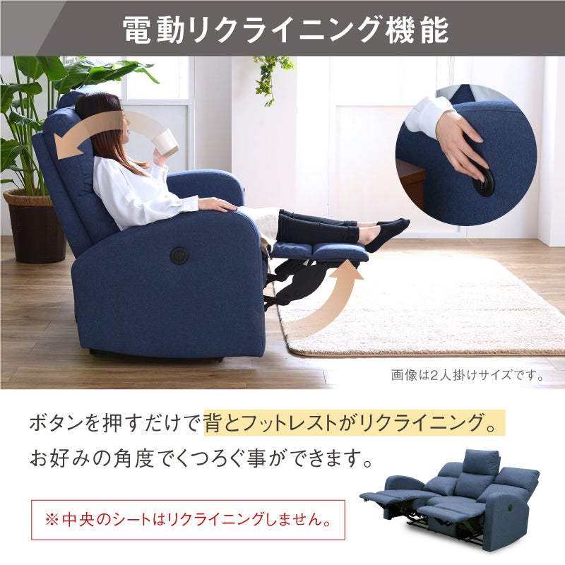 クルーンⅡ 3人掛けソファ 電動 リクライニング 幅180㎝ ブルー 商品コード 428127