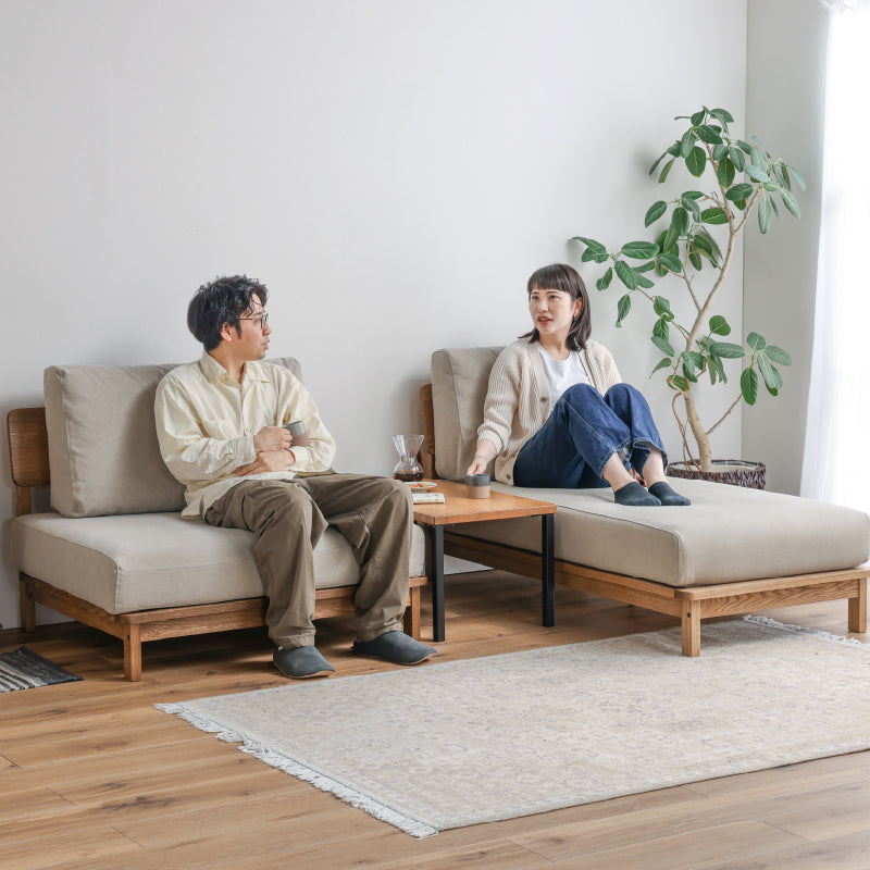設置の際はソファを壁から少し離してお使いください。(目安:10~15cm 程度)壁に直接触れていると、色移りしたり、壁紙が変色するおそれがあります。また、風通しが悪くなり空気が滞留することで、壁側の結露や外気の影響でカビが発生しやすくなり、健康を害することがあります。開梱時に稀に表面のシワ、変形等が見られる場合がありますが、輸送中におこったものなので、ご使用されるうちに自然に回復します。また、叩いたり張地を軽く引っ張ると回復も早くなります。濡れた体で腰掛けたり、濡れたものなどを製品に乗せないでください。カビや汚れ、変色の原因となります。摩擦(特に湿った状態での摩擦)や汗や雨などの水分で衣類等に色移りする場合がございます。また、淡色系の物には十分にご注意ください。新聞や雑誌などの印刷物を長時間置いておくと商品にインクが移る可能性がございますので、長時間放置しないでください。アルコール・ベンジン・シンナー・除光液等有機溶剤・エタノール・消毒液・除菌液は色落ちとシミの原因となりますので使用しないでください。カバーリングソファの場合、カバーを外した状態の製品を直射日光に当てないでください。変色や劣化の原因になります。「上に立つ」「踏み台代わり」、また製品の上で飛び跳ねるなど人が座る用途以外には使用しないでください。転倒によるケガ・破損・変形の原因となります。床面に「傾斜」や「段差」がある場所には設置しないでください。転倒・変形・破損の原因となりますので平らな場所に水平に設置してください。製品のひじ掛けには腰掛けないでください。思わぬ事故の原因になります。床面がフローリングや畳の場合は、敷物を敷いたり、脚の底面にフェルト等の緩衝材を貼ってご使用ください。床面の傷防止になります。ソファの中央についている脚は、人が座った時に床に接地する構造で、 あくまで荷重がかかった時の補強用のものでございますので、浮いている状態が正常になります。購入時期が異なる場合や、ご購入いただいた商品の製造時期によって、同じ商品・色名でも色が多少異なります。