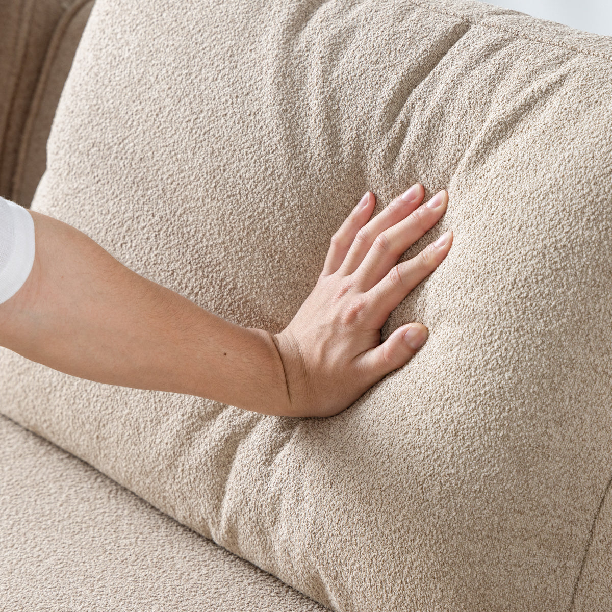 本体構造 座面:高密度ウレタンフォーム36kg 6cm + ウレタンフォーム30kgハード 7.5cm 背クッション:フェザー+スピニングスポンジ 座面下構造:Sバネ