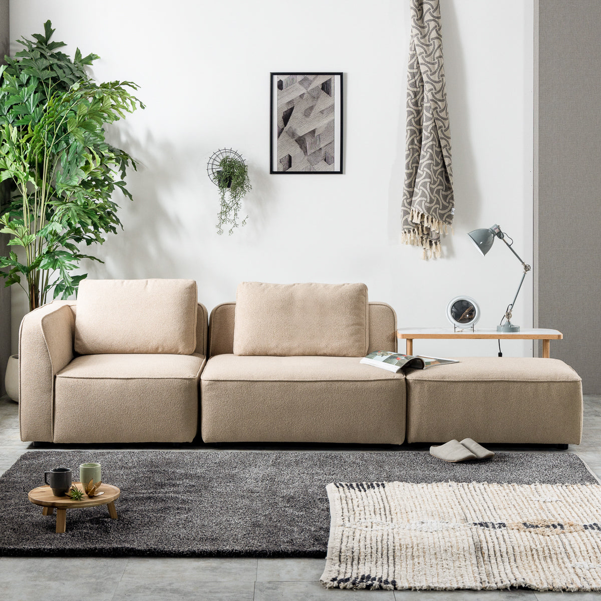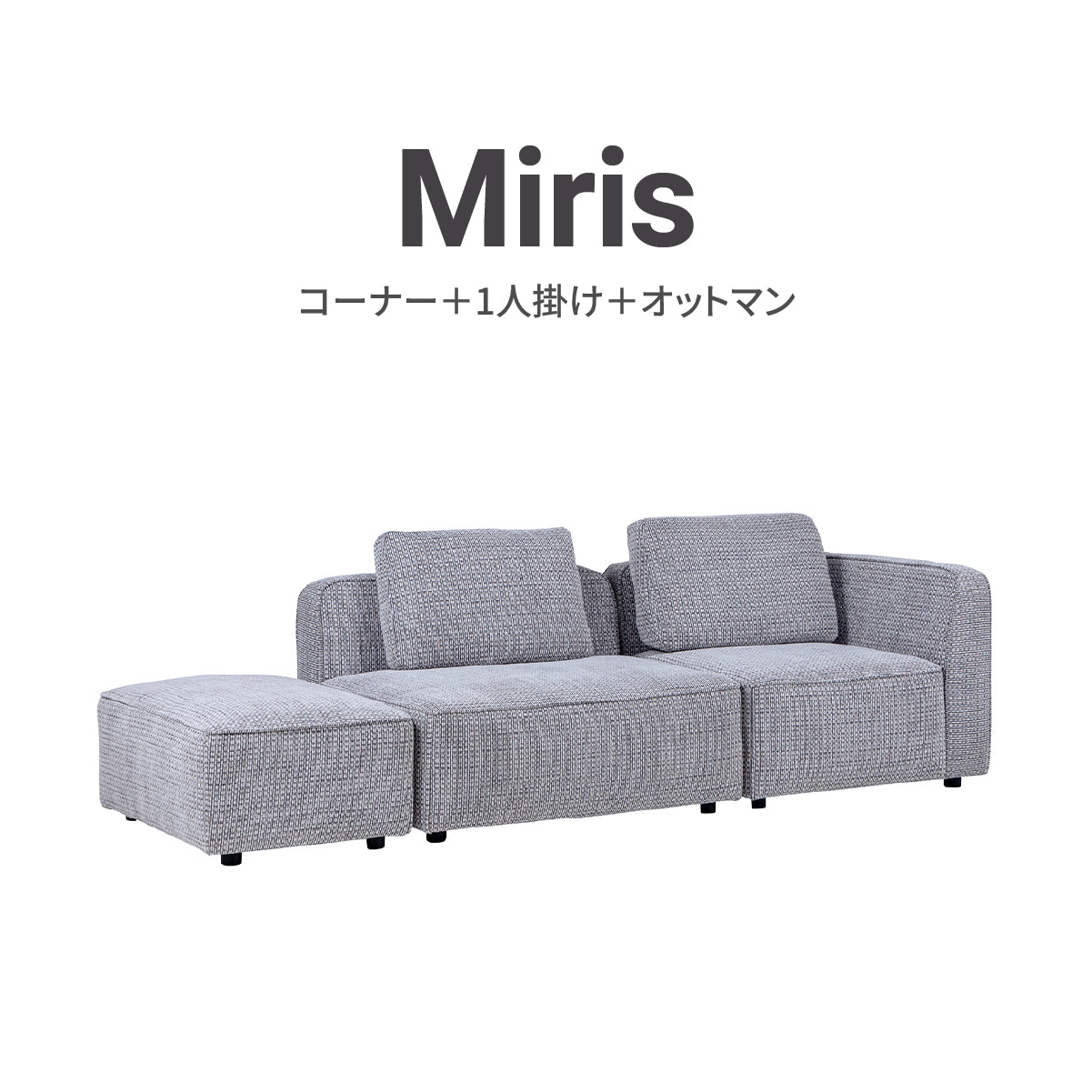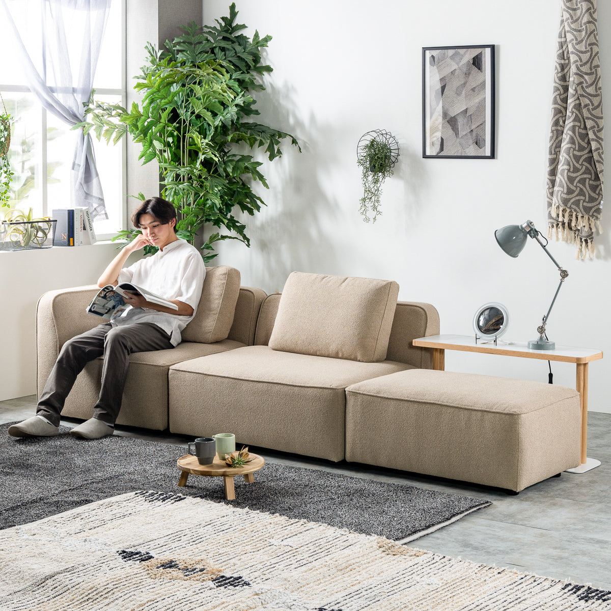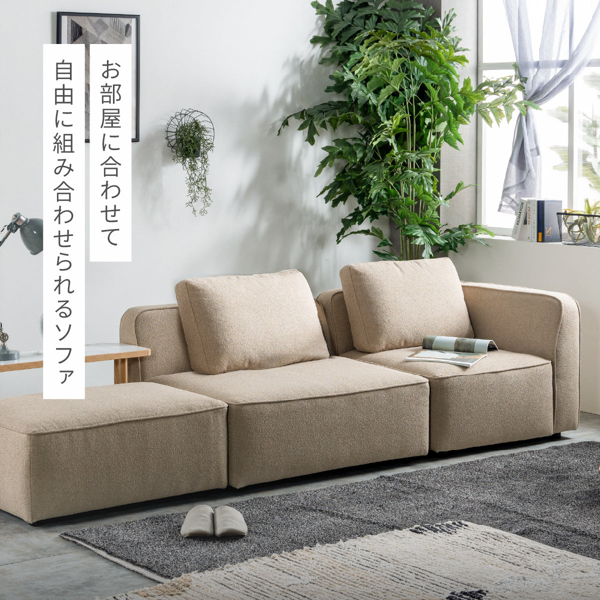 ミリス 1人掛け+コーナー+オットマン ソファ サンドベージュ / ブークレ生地 商品コード 427506
