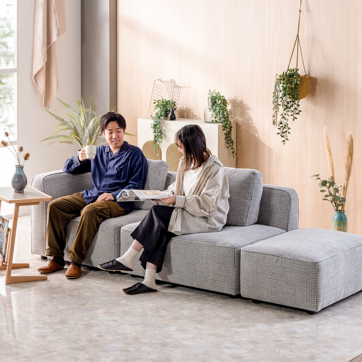 ※こちらの画像は、左からコーナー+1人掛け+オットマンを組み合わせています。カラーはルクソールグレーです。