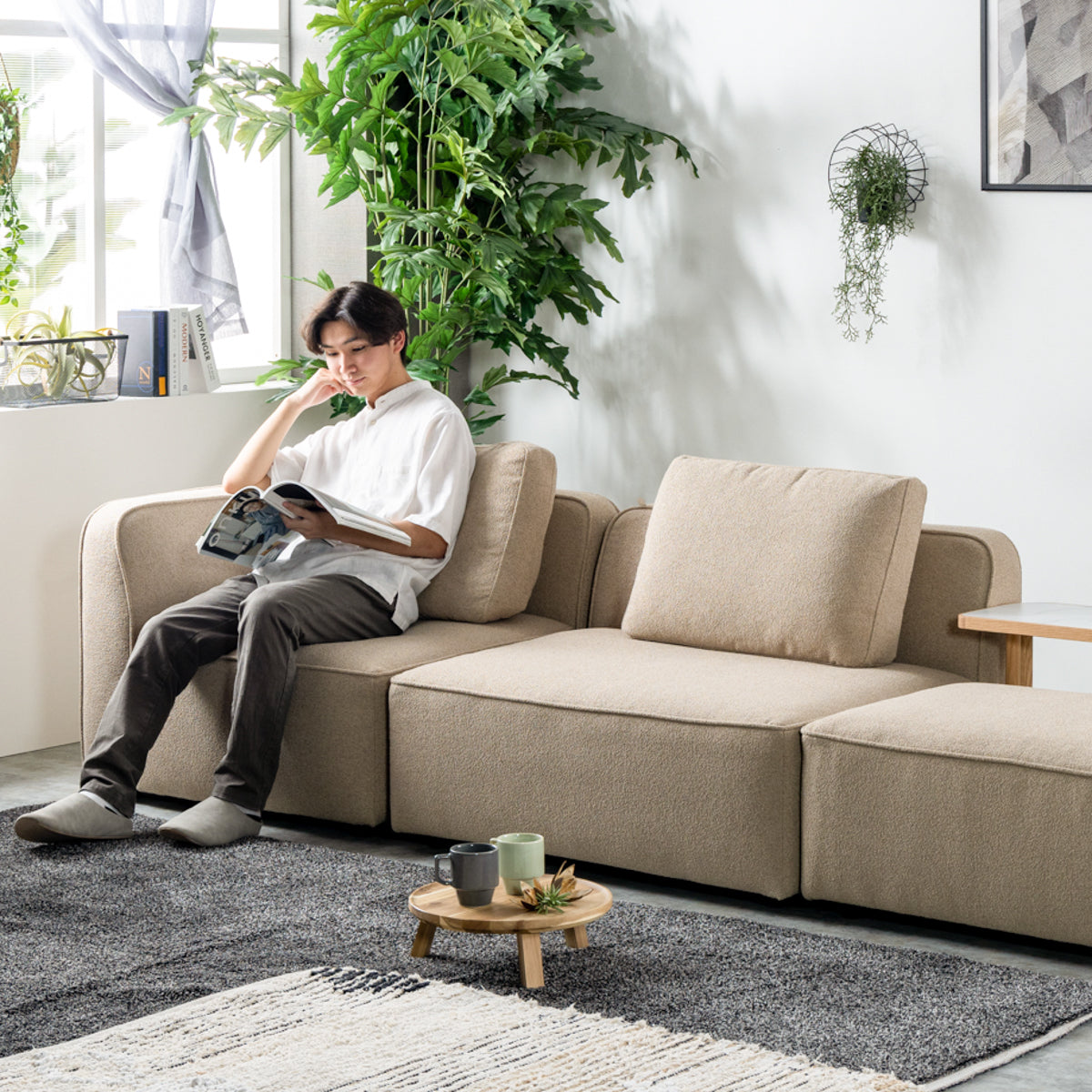 ※こちらの画像は、左からコーナー+1人掛け+オットマンを組み合わせています。カラーはサンドベージュです。