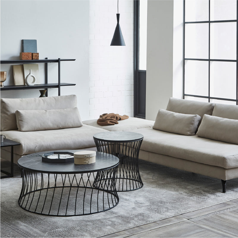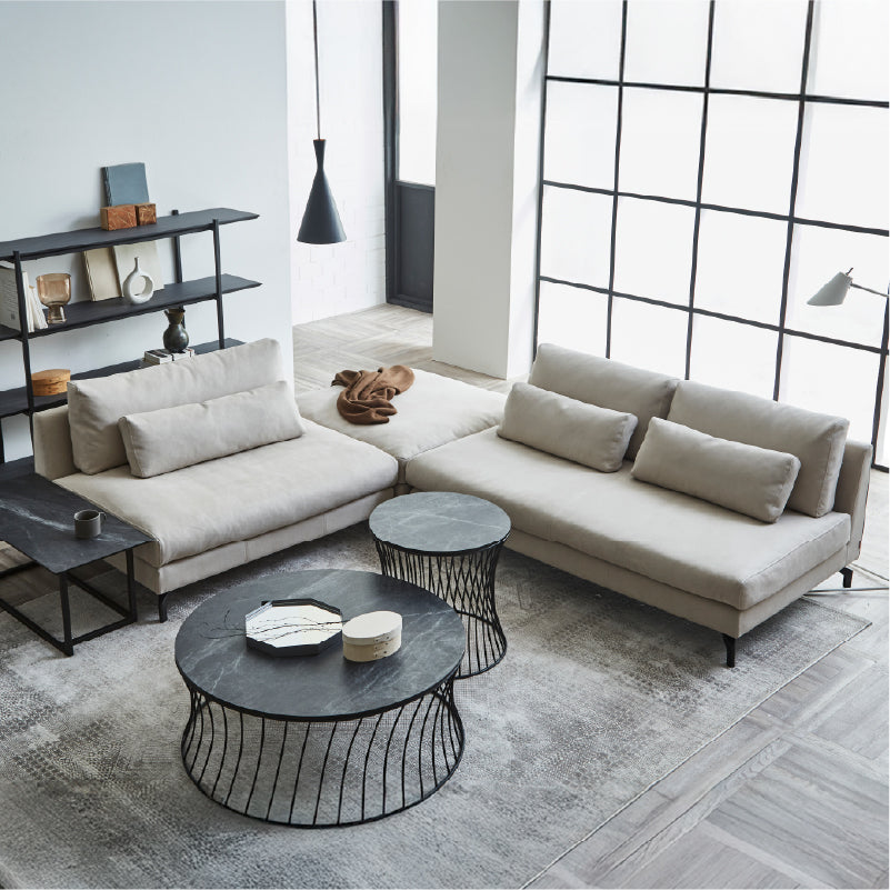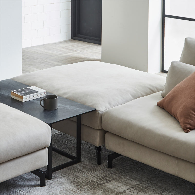 本体構造 座面内材:ソフトフェザー+高密度ウレタンフォーム 座面下構造:ウェービングベルト 背面内材:フェザー/ウレタンフォーム