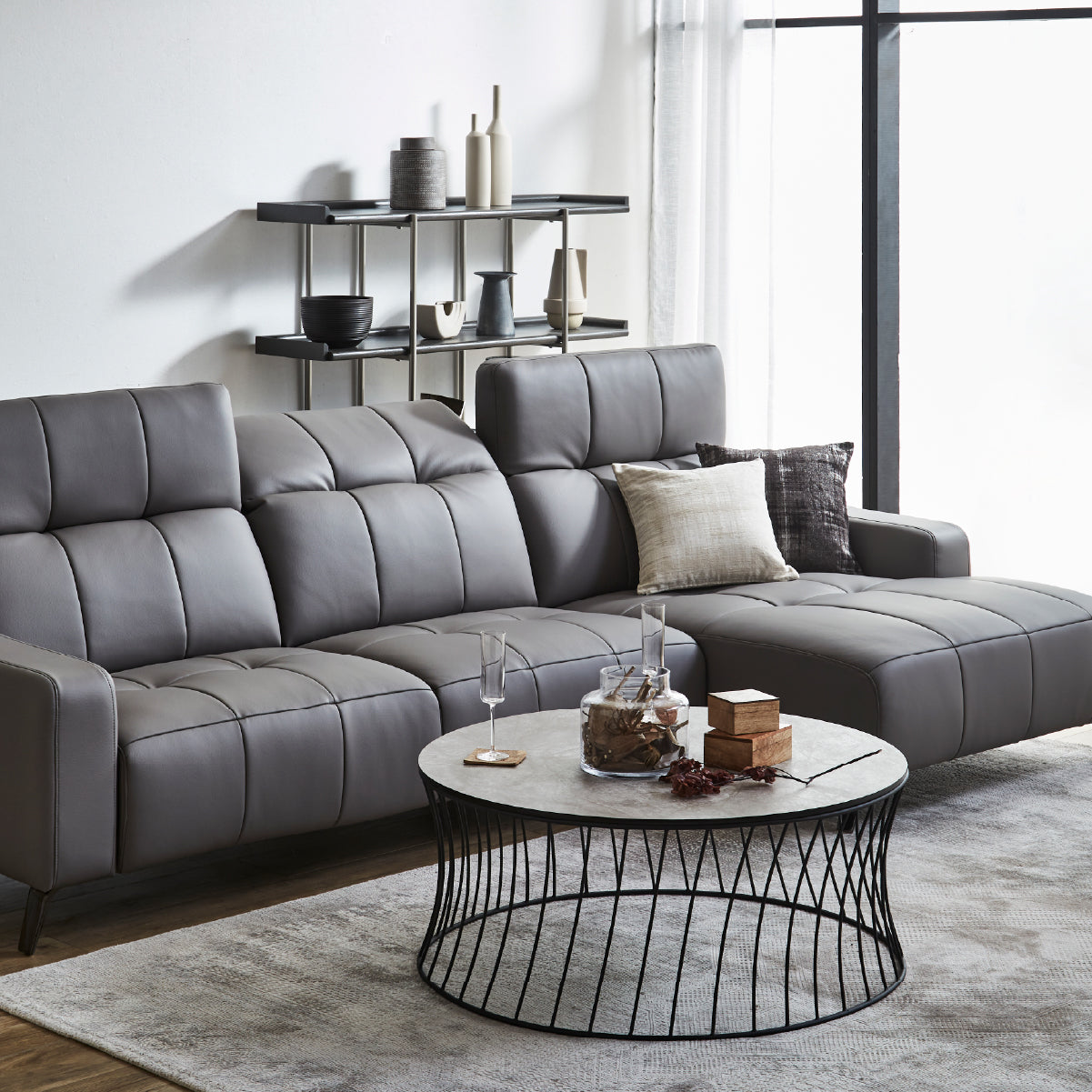 ボリュームとスマートさを兼ね備えたカウチソファ。置くだけでワンランク上の空間を演出してくれます。