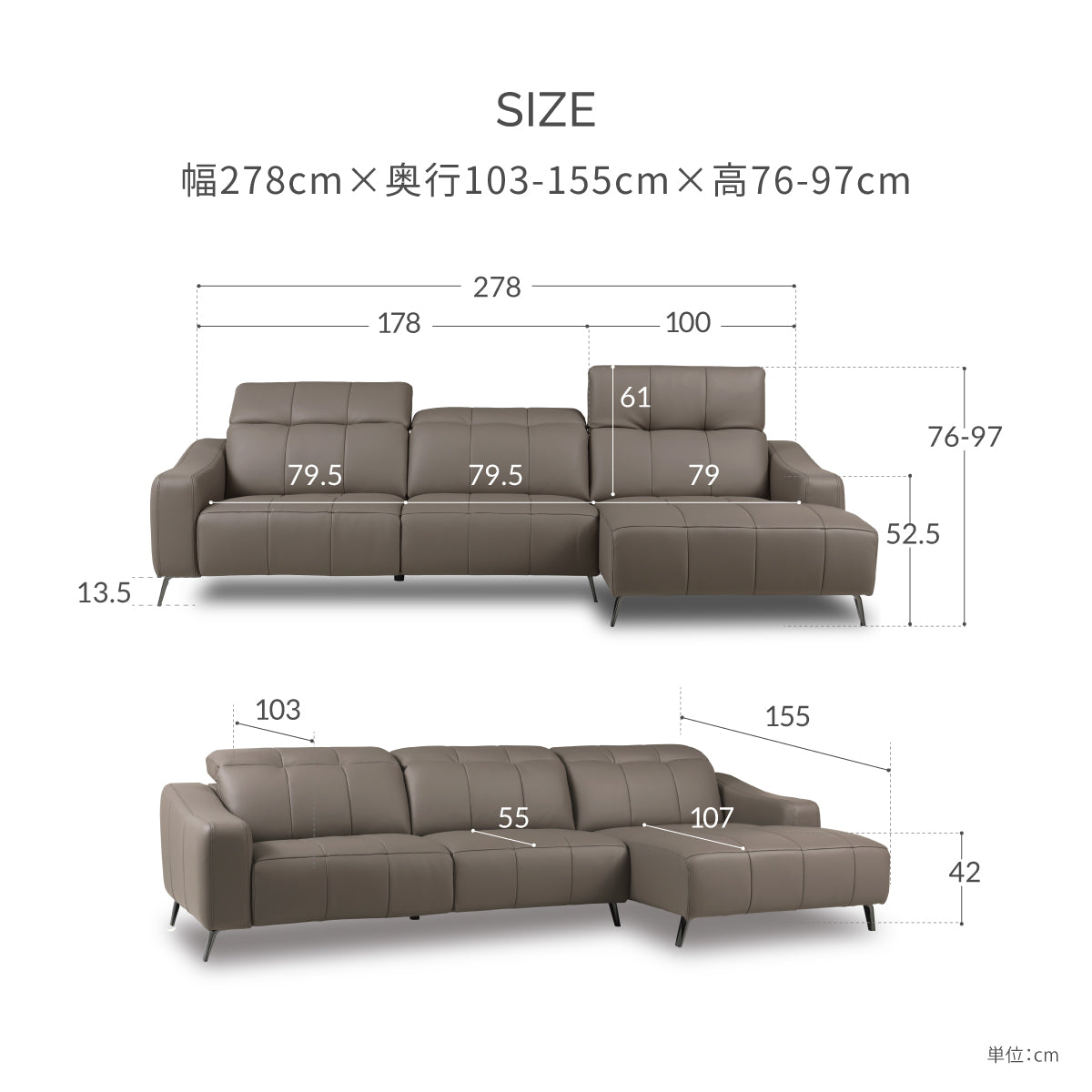 バザードⅡ 左カウチソファ 幅278cm SILT21 スノーホワイト(シルキーレザーテックス) / 左カウチ 商品コード 425047