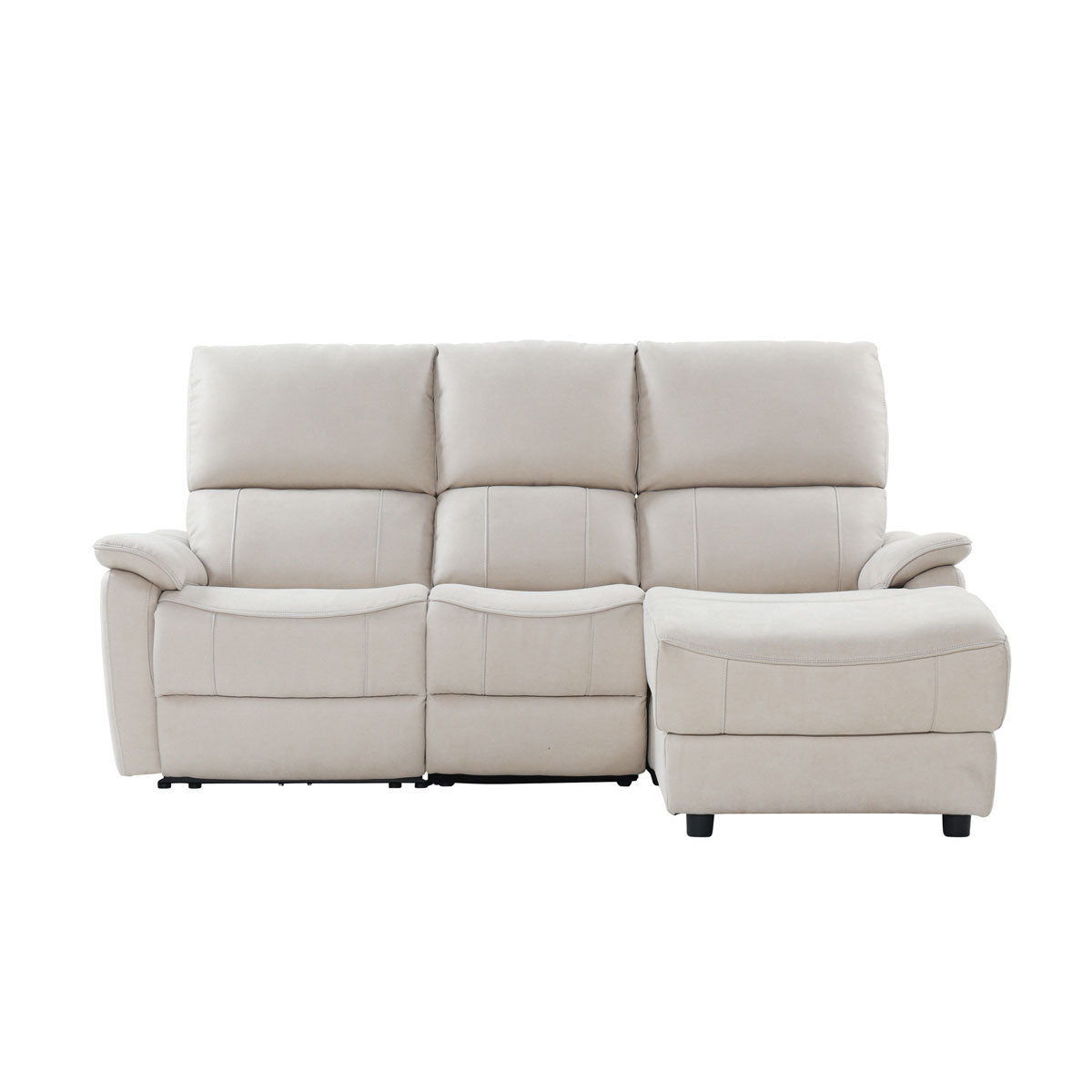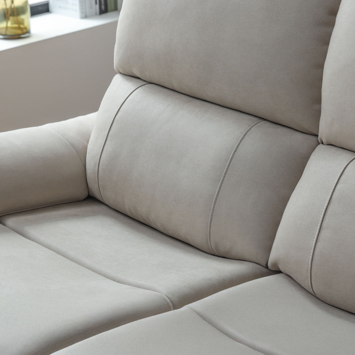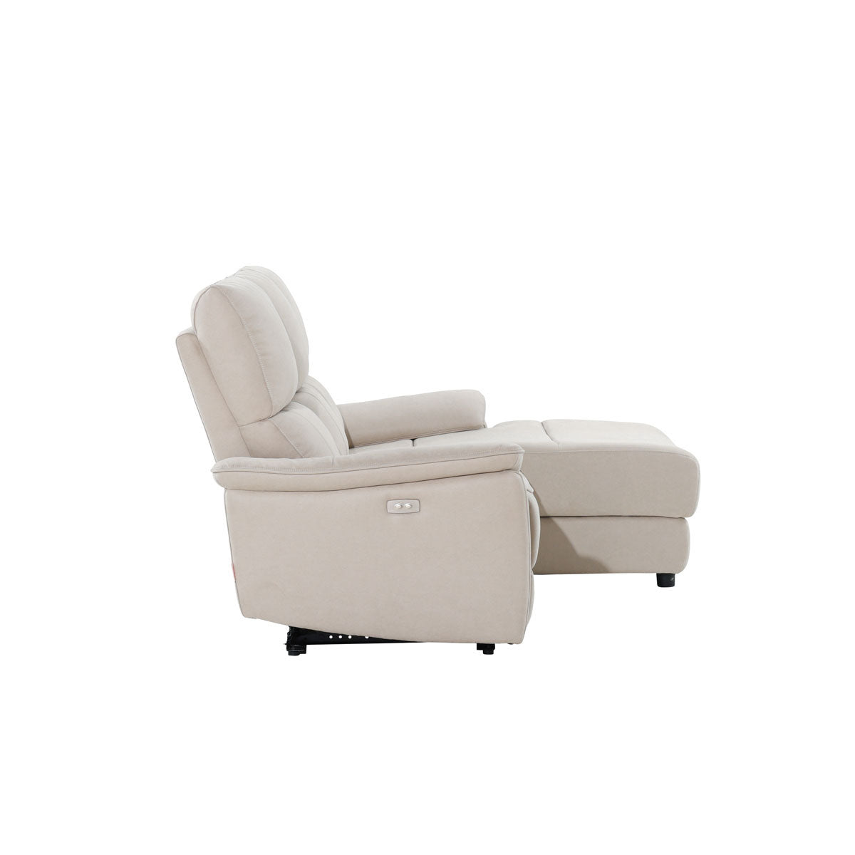 リクライニング操作はソファの左側にあるボタンを軽く押すだけです。お好みの姿勢調節が簡単にできます。