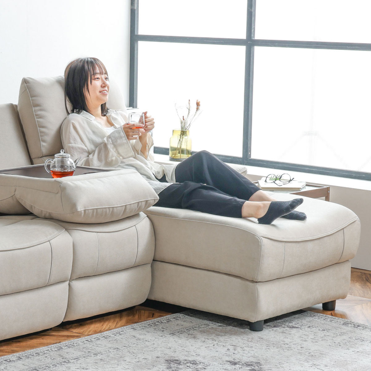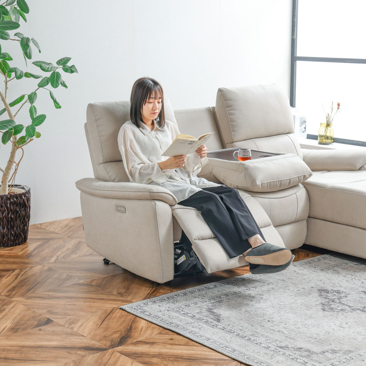 電動リクライナーやコンパクトなサイズ感など機能性・デザイン性・座り心地にこだわったカウチソファです。