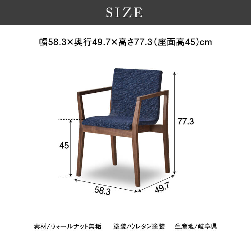 材質 フレーム:ウォールナット無垢 座:ファブリック
