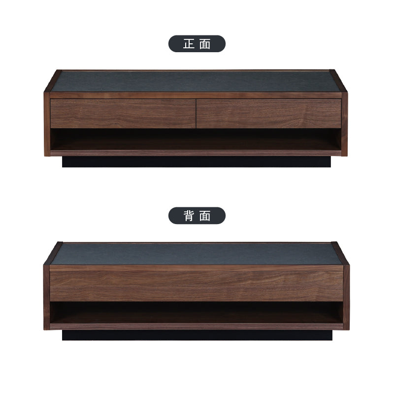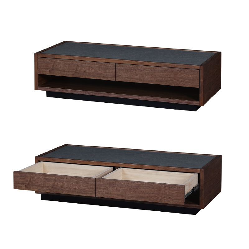 商品情報 高機能素材として用いられるメラミン材を用いています。 メラミンは、熱や汚れ、キズに強いため、カフェやレストランで、よく使用されています。 本体は、ウォールナットでシンプルにまとめあげ、二杯の深引き引出しを用意し、収納力も高い仕様です。 下側は、OPEN収納を設けることにより、デザインの圧迫感をなくした設計です。