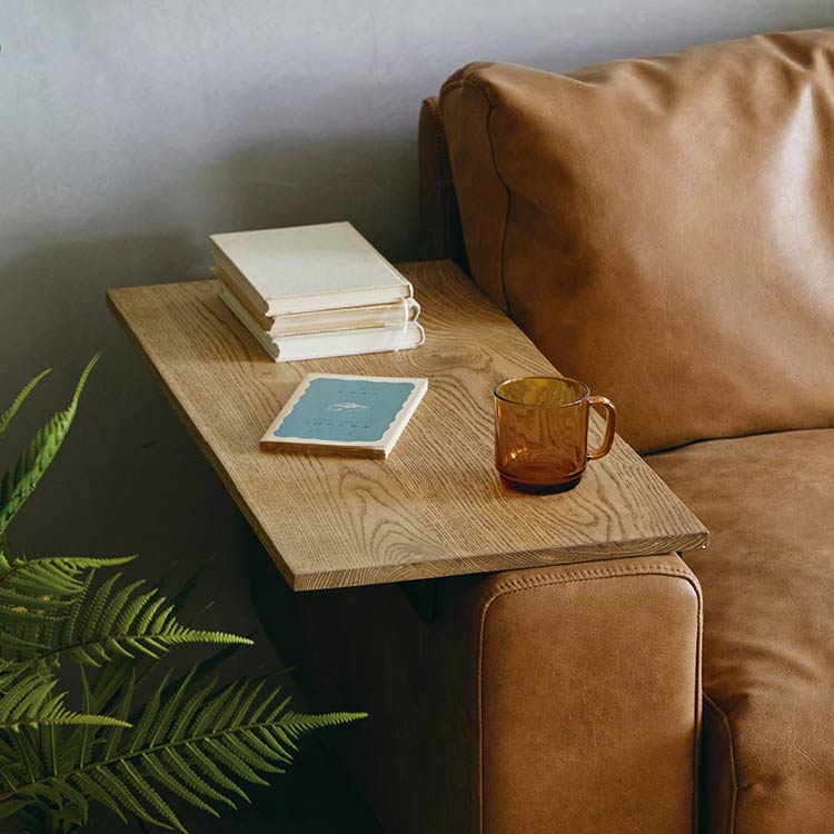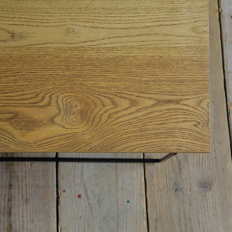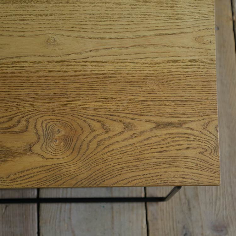 オイル塗装は水分・油分に弱く、長時間放置すると輪ジミやシミの原因になります。木材の表面に施した、無垢の風合いを活かした仕上げです。