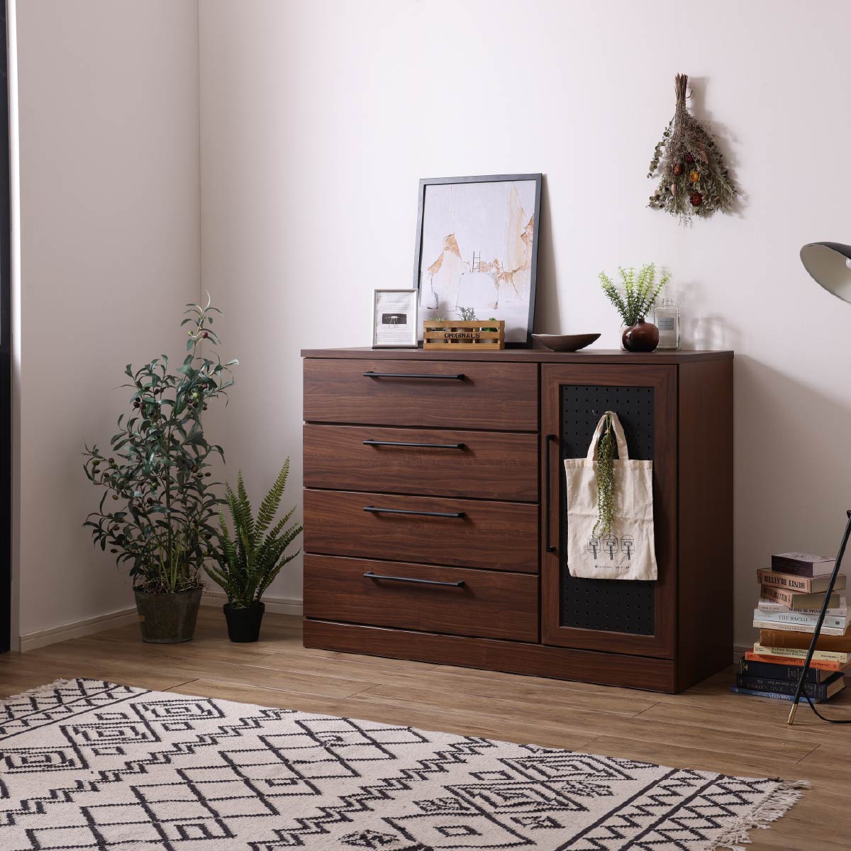 ファースト キャビネット ウォールナット/ブラック / 幅80cm 商品コード 360054